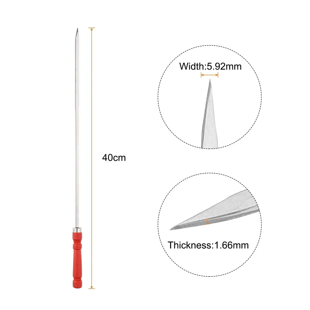 Metal BBQ skewers are made of quality stainless steel, rust-proof and corrosion-resistant, ensuring durability. Heat resistant, will not twist or deform during grilling.The smooth surface of the wide kebob skewers prevents food residue from sticking, is easy to clean, and is dishwasher safe.The skewers for grill can thread various foods such as shrimp, meat, chicken, fruits, and vegetables. Suitable for outdoor barbecues, picnics, and family gatherings.The skewers for grilling may become hot during the grilling process, please handle them with care.