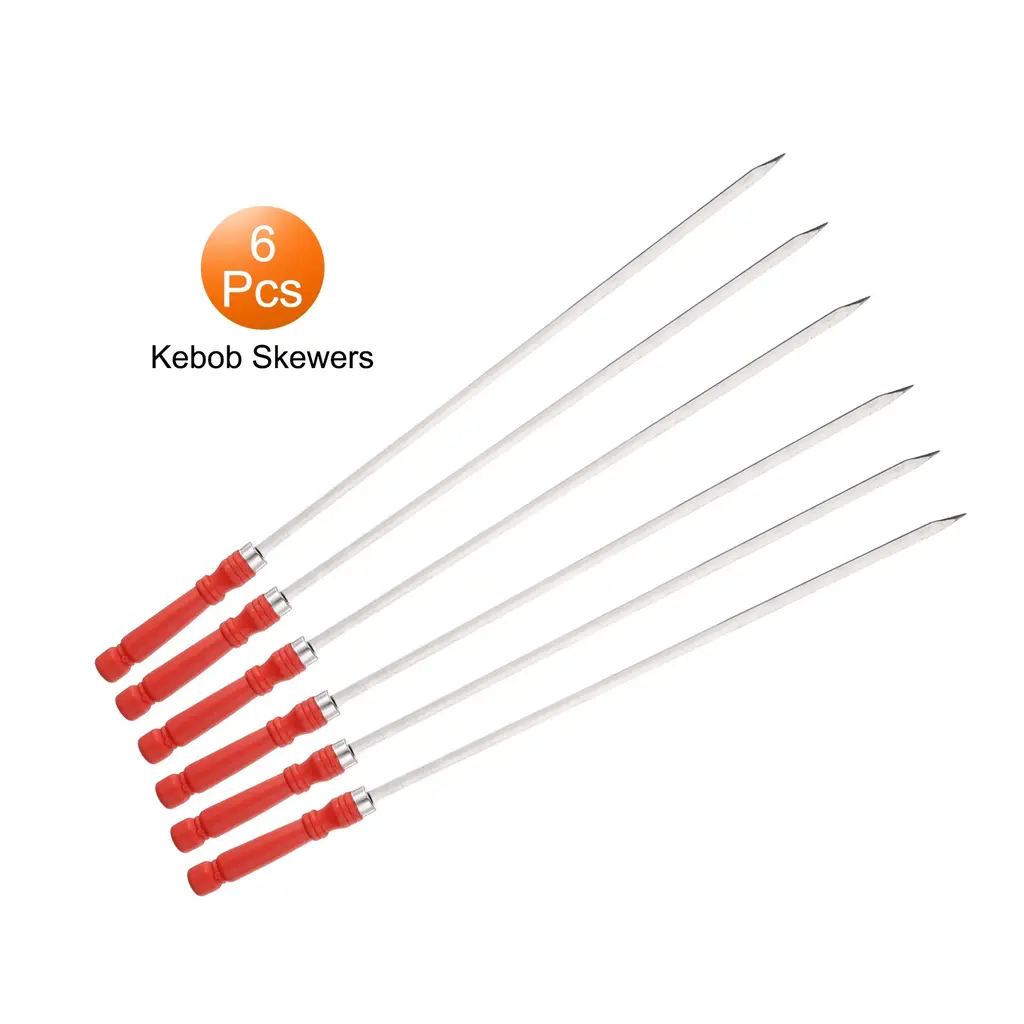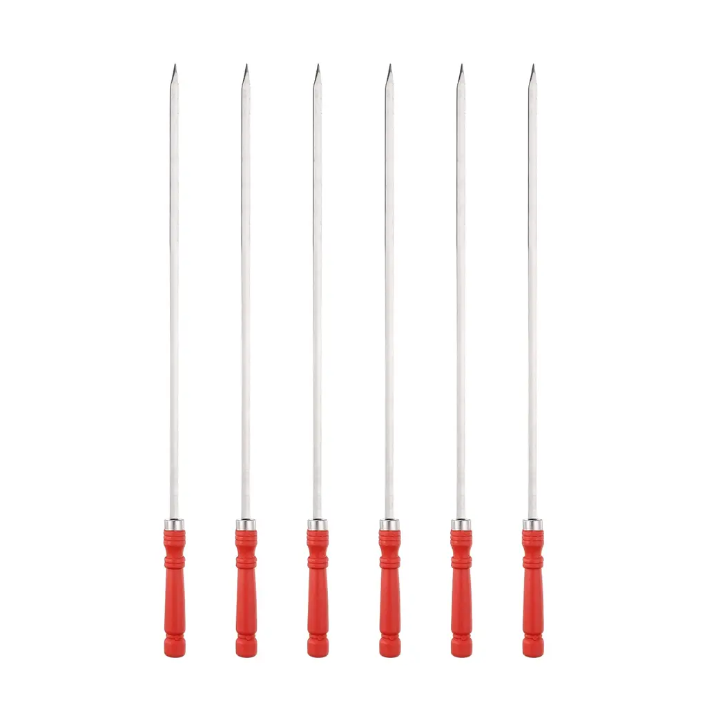 6Pcs Kebob Skewers 40cmx5.92mmx1.66mm Flat Sticks With Red Grip Handle - Silver