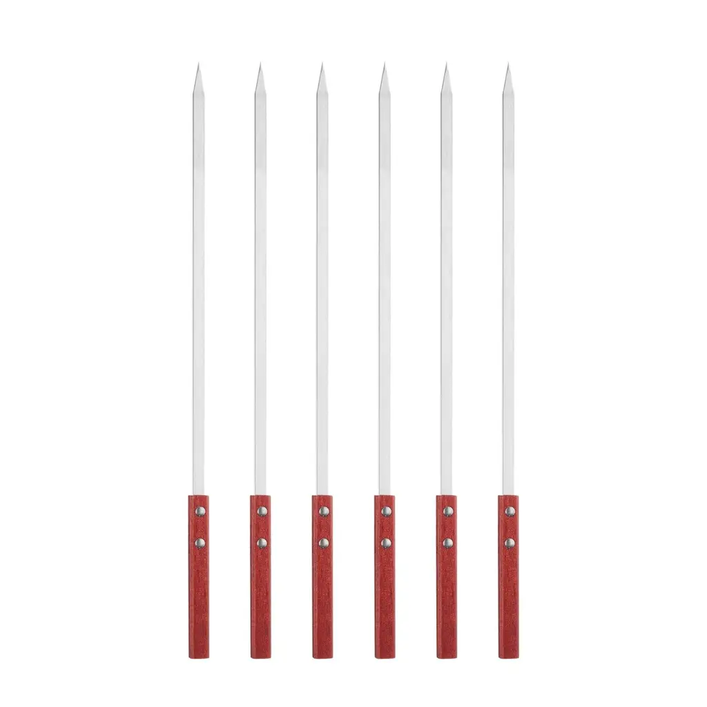 6Pcs Kebob Skewers 50cmx10mmx2mm Flat Sticks With Wood Handle - Silver