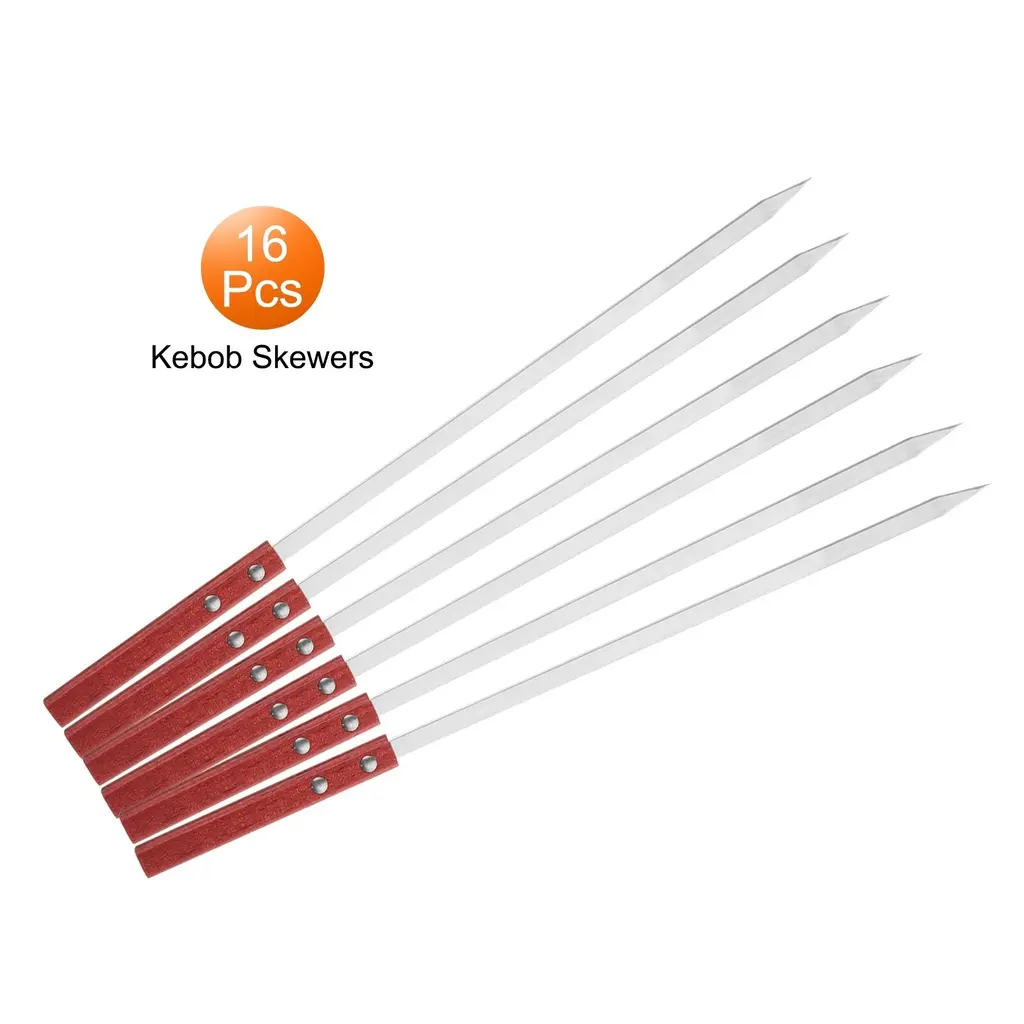 Metal BBQ skewers are made of quality stainless steel, rust-proof and corrosion-resistant, ensuring durability. Heat resistant, will not twist or deform during grilling.The smooth surface of the wide kebob skewers prevents food residue from sticking, is easy to clean, and is dishwasher safe.The skewers for grill can thread various foods such as shrimp, meat, chicken, fruits, and vegetables. Suitable for outdoor barbecues, picnics, and family gatherings.The skewers for grilling may become hot during the grilling process, please handle them with care.