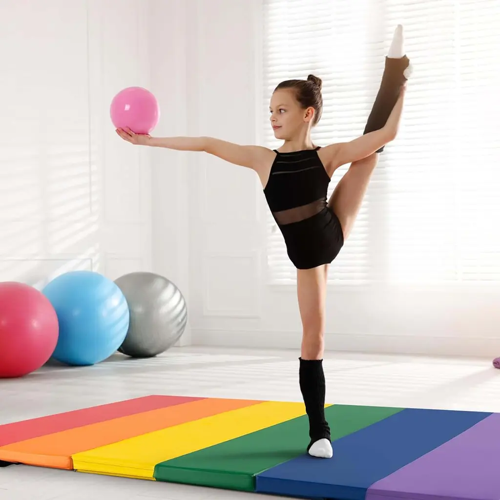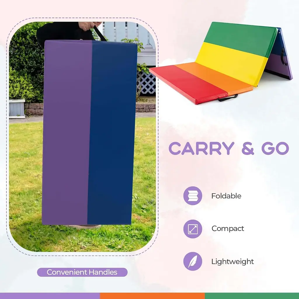 6'x4'gymnastics Mat Folding Anti-Tear Tumbling Mat W/carrying Handles - Multi