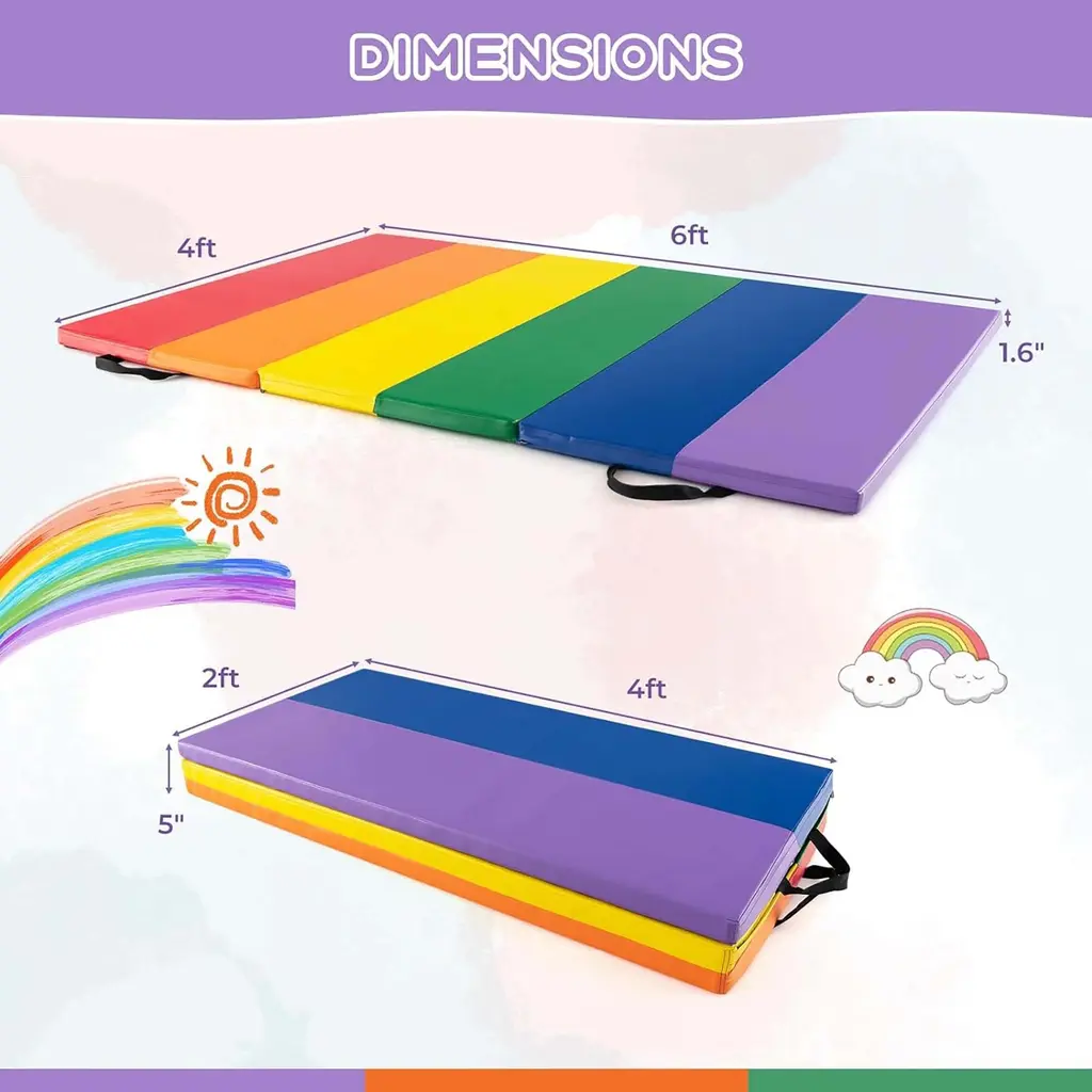 This folding gymnastics mat is the ultimate solution to all your exercise needs! With its lightweight design and convenient carrying handles, you can easily take this foldable exercise mat with you wherever you go. Made of high-quality PU leather and resilient EPE foam, the mat provides a comfortable and safe surface for various exercises, such as yoga, gymnastics, dancing, stretching, etc. In addition, this folding gymnastics mat can also be used as a play mat for children. The removable zippered cover is easy to wipe clean. Moreover, the thumbing mat features hook and loop fasteners to allow for multiple mats to connect together. Features:Specification