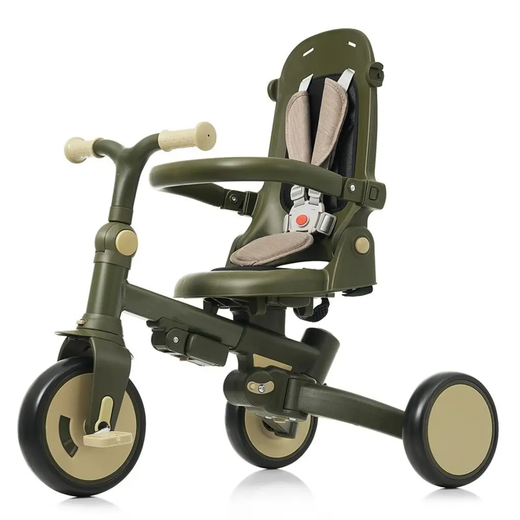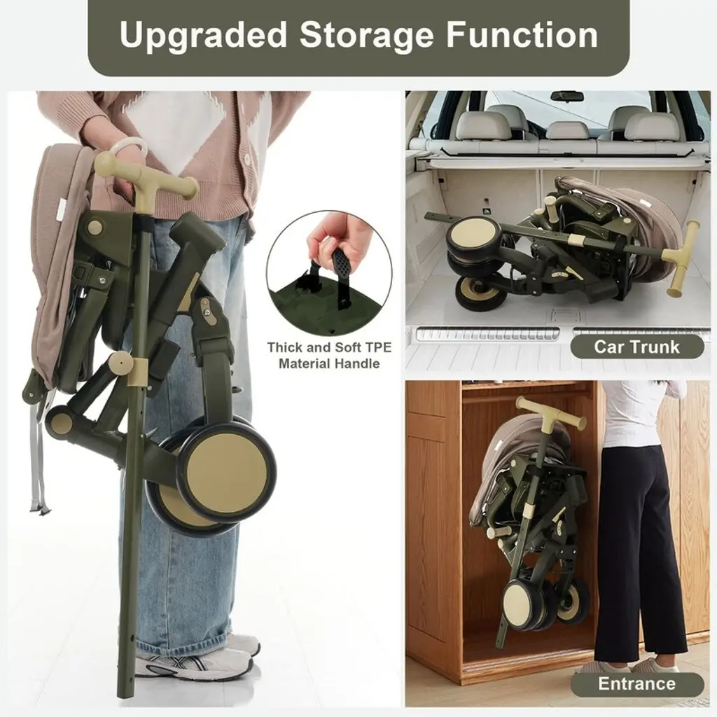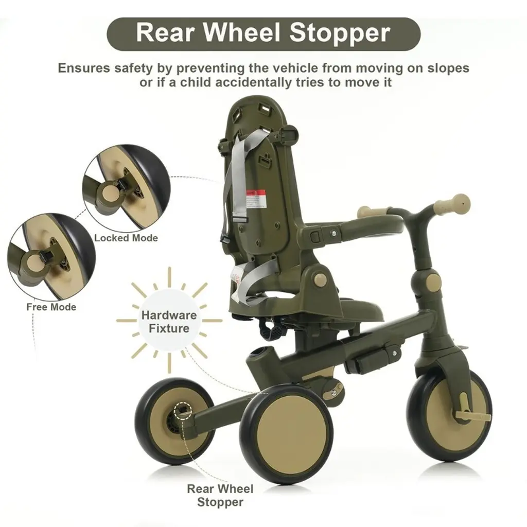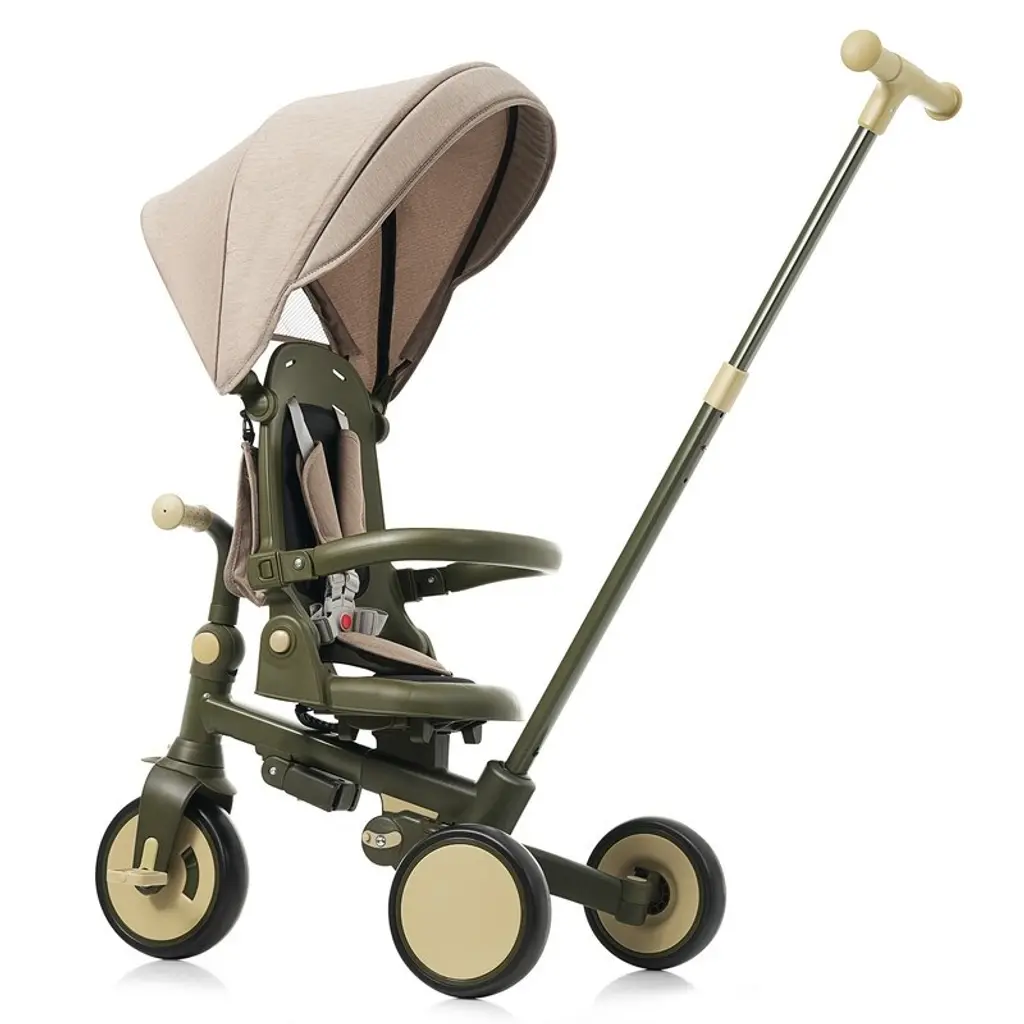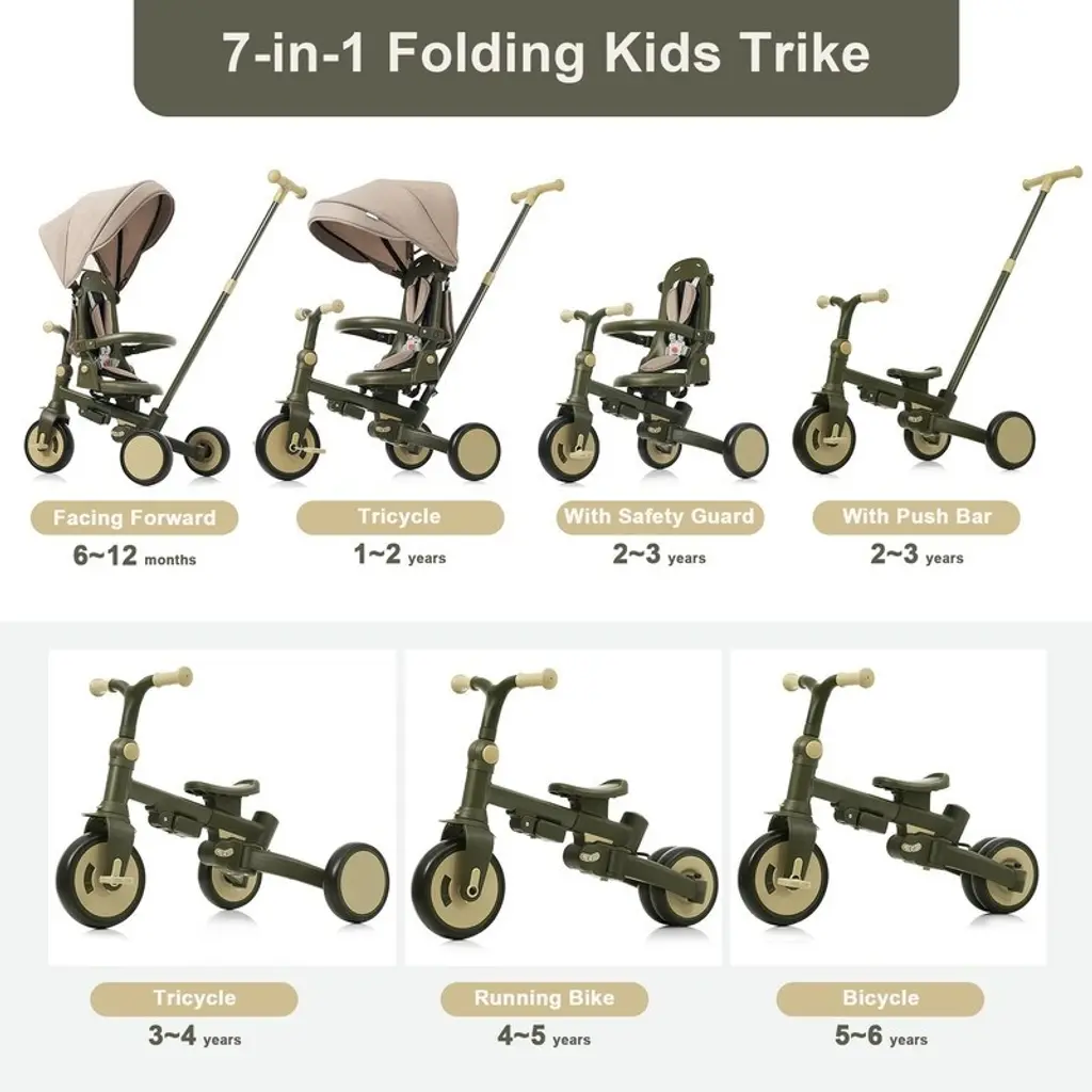 7-In-1 Versatile Baby Trike: Easily Foldable, Parent Handle Adjusts,detachable Pedals, Canopy & Guardrail (12-72 Months) - Dark Green