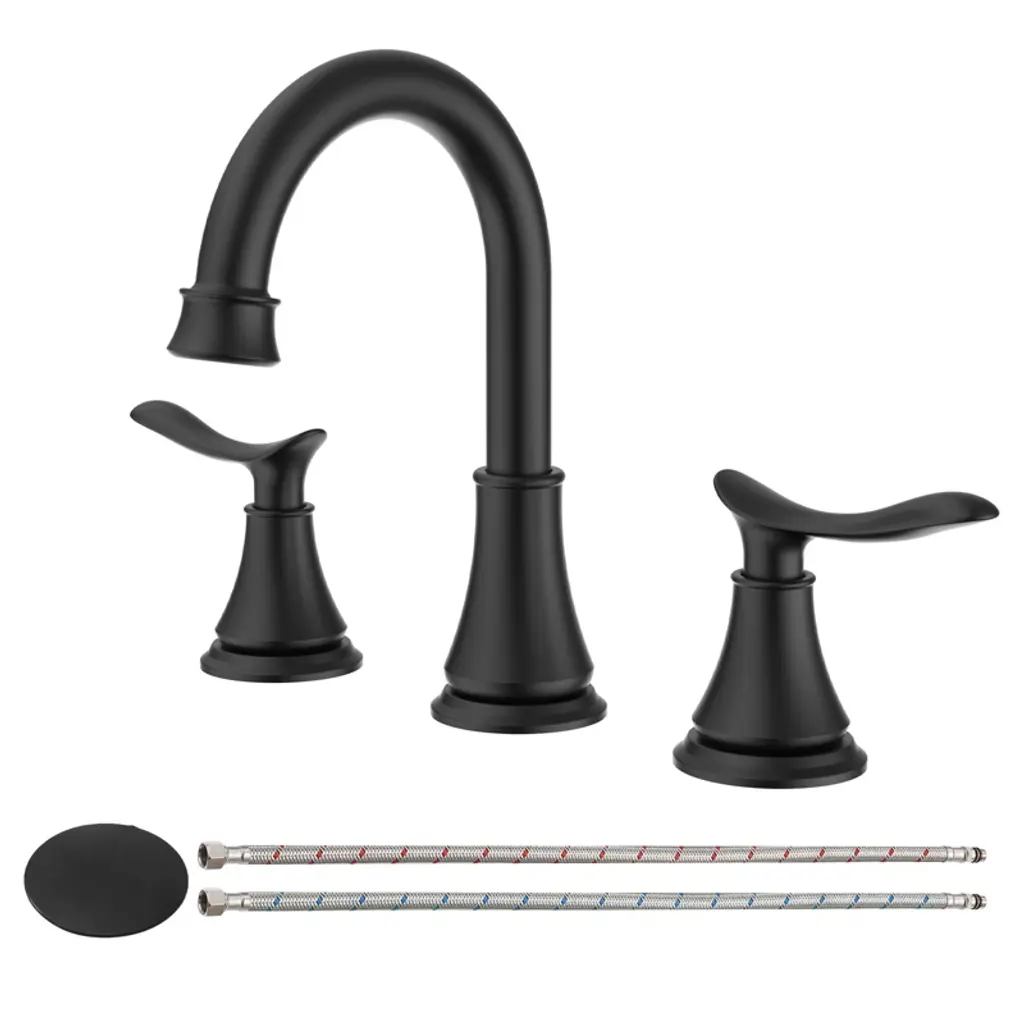 8 In. Double Handle Bathroom Sink Faucet In Matte Black - Black