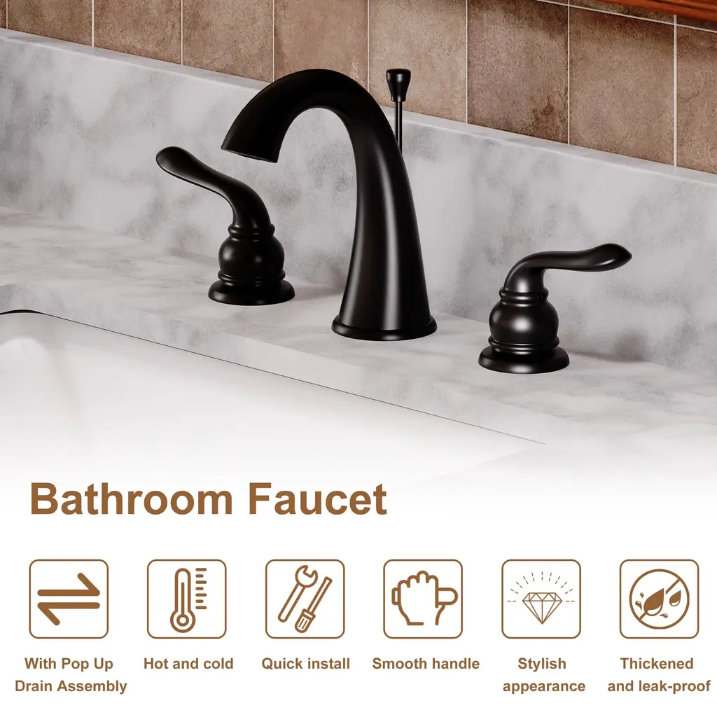 This bathroom sink faucet blends perfectly into a variety of bathroom décor with its elegant silhouette, enhancing the overall aesthetic of the space. The unique lift-and-drain design allows you to easily press to block or lift to drain, while the dual handle design keeps the cold and hot water handles separate for precise water temperature adjustment.