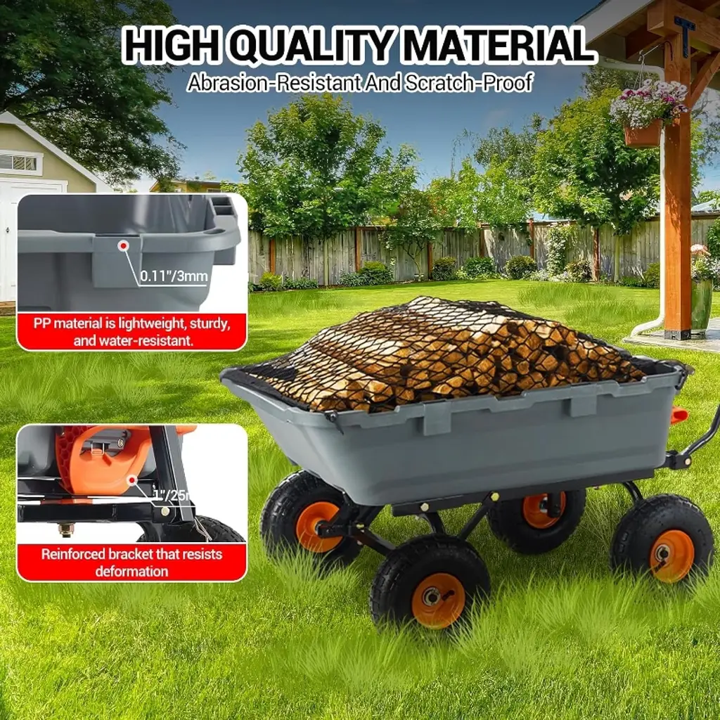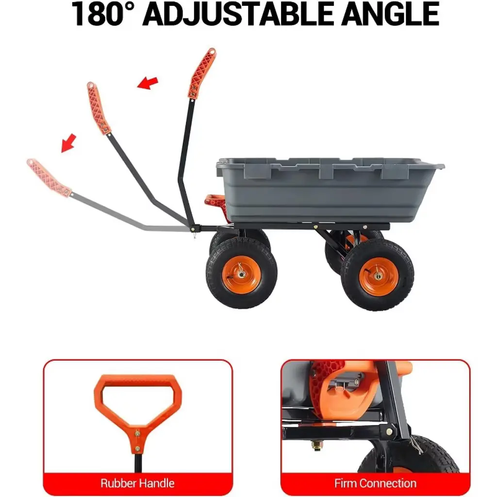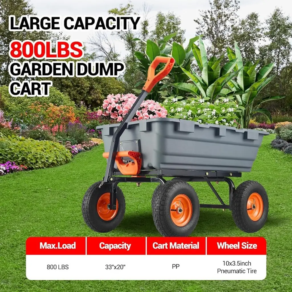 800 Lbs Poly Garden Dump Cart, Heavy-duty Wheelbarrow With 10-inch Tires, 180° Rotating Handle, Steel Frame And Quick Release System, Gray