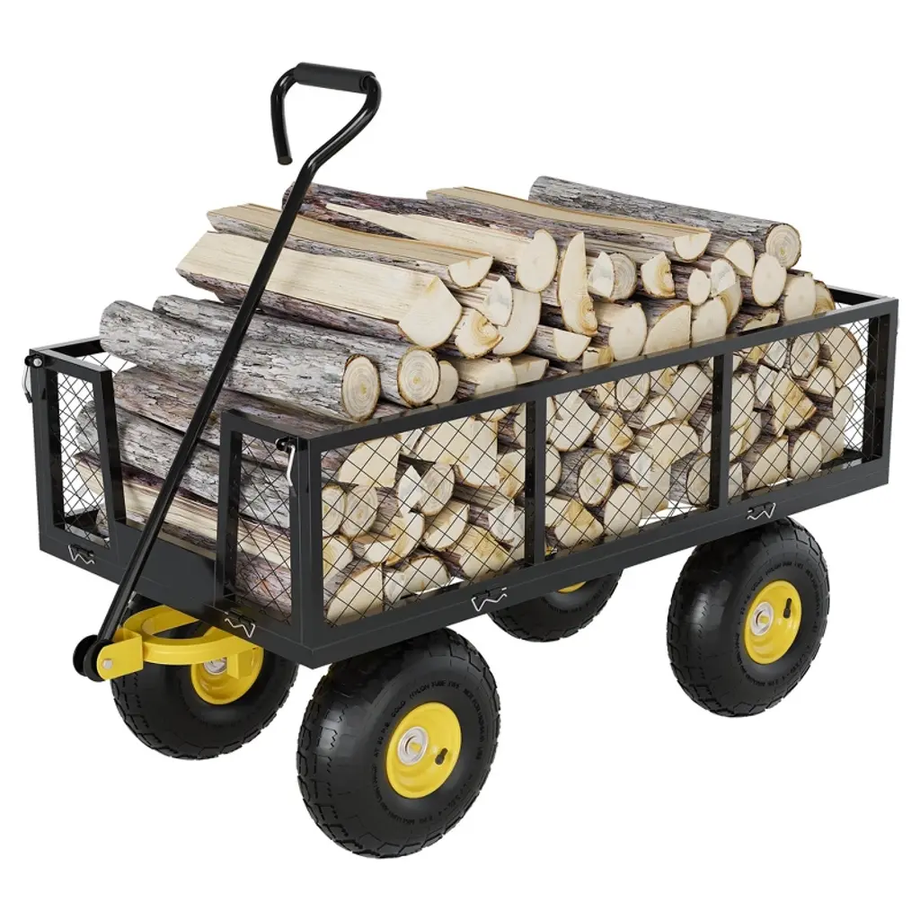 900lb Steel Garden Cart, 3-in-1 Folding Utility Wagon With Detachable Side Panels, 180° Swivel Handle & 10" Tires For Outdoor, Yard, Lawn & Garden