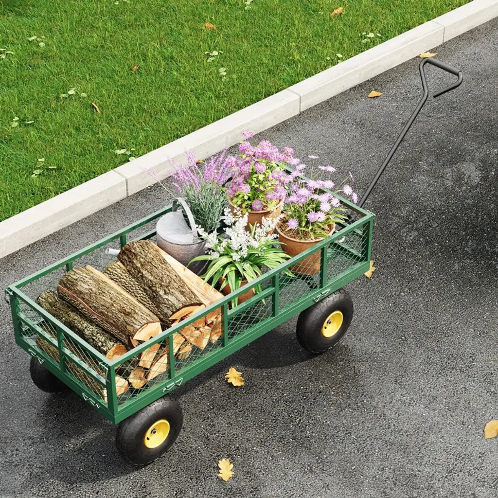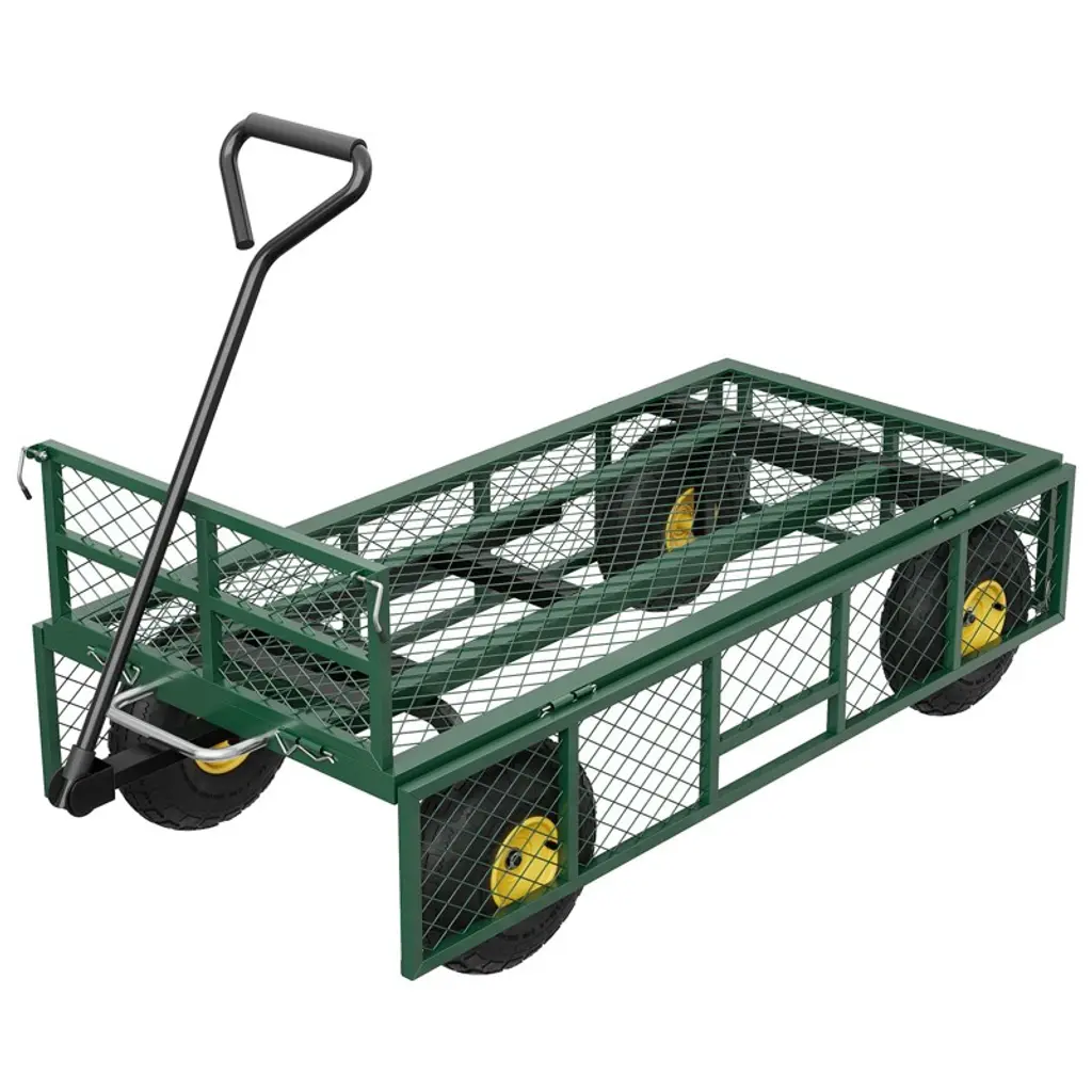 900lbs Steel Garden Dump Cart Utility Wagon, Heavy Duty Yard Dump Wagon Cart With Removable Sides, Pullable Handle, 10in All Terrain Wheels, Green