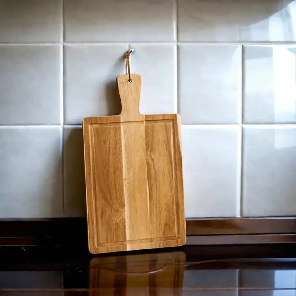 Specification: Description: Discover the resilience and enduring beauty of our Acacia Wood Cutting Board, perfect for both culinary tasks and home decor. This board is crafted from acacia wood, renowned for its strength and striking visual appeal. The rich brown and golden hues infuse warmth into any kitchen, making it more than just a functional item -it's a piece of art. Whether used as a cutting surface or a decorative centerpiece, this board enhances any culinary space or dining experience.