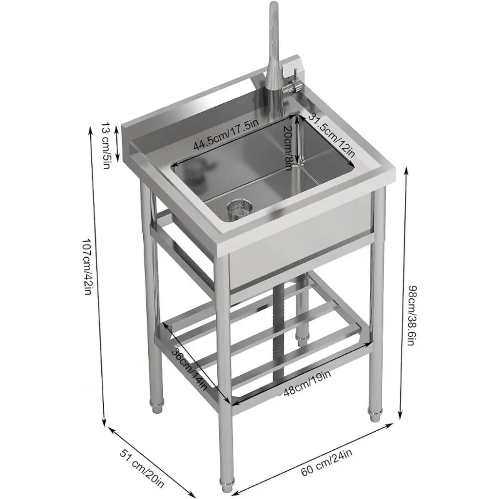 Acekool 61in Stainless Steel Utility Sink, Single Bowl With Hot & Cold Pull-out Faucet For Kitchen, Laundry, Garage, Garden