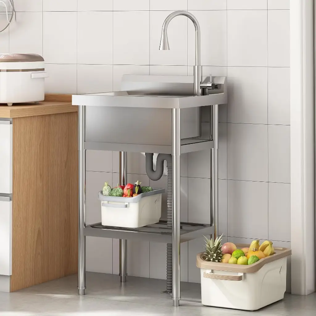 Acekool’s stainless steel utility sink is a multi-use upgrade for busy homes and workspaces. The large single bowl makes soaking, washing, and rinsing big items simple, whether it’s cookware, gardening tools, or clothes. Both hot and cold water connections give you the right temperature for washing hands, cleaning up after projects, or tackling piles of dishes. The included pull-out faucet moves with you—just point and rinse, even in the hardest-to-reach corners. Its sturdy, easy-to-clean finish stands up to frequent use and resists stains, making maintenance light work in kitchens, garages, laundry rooms, restaurants, or gardens. Designed for flexible placement, this sink fits wherever you need a reliable washing station, inside or outside.