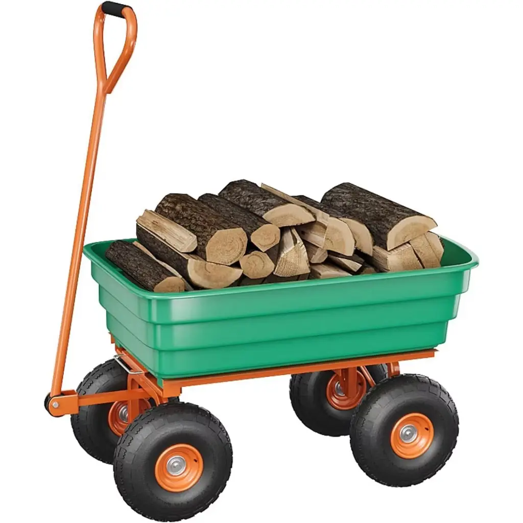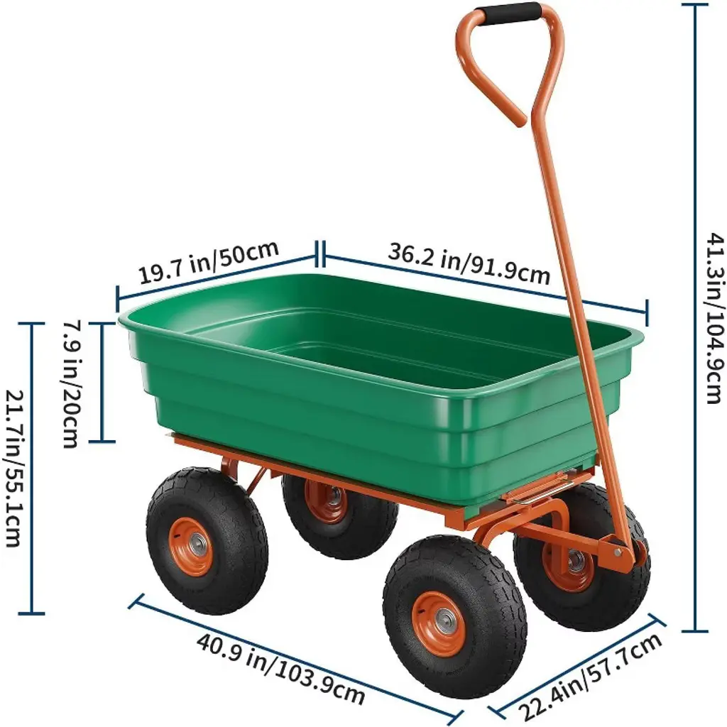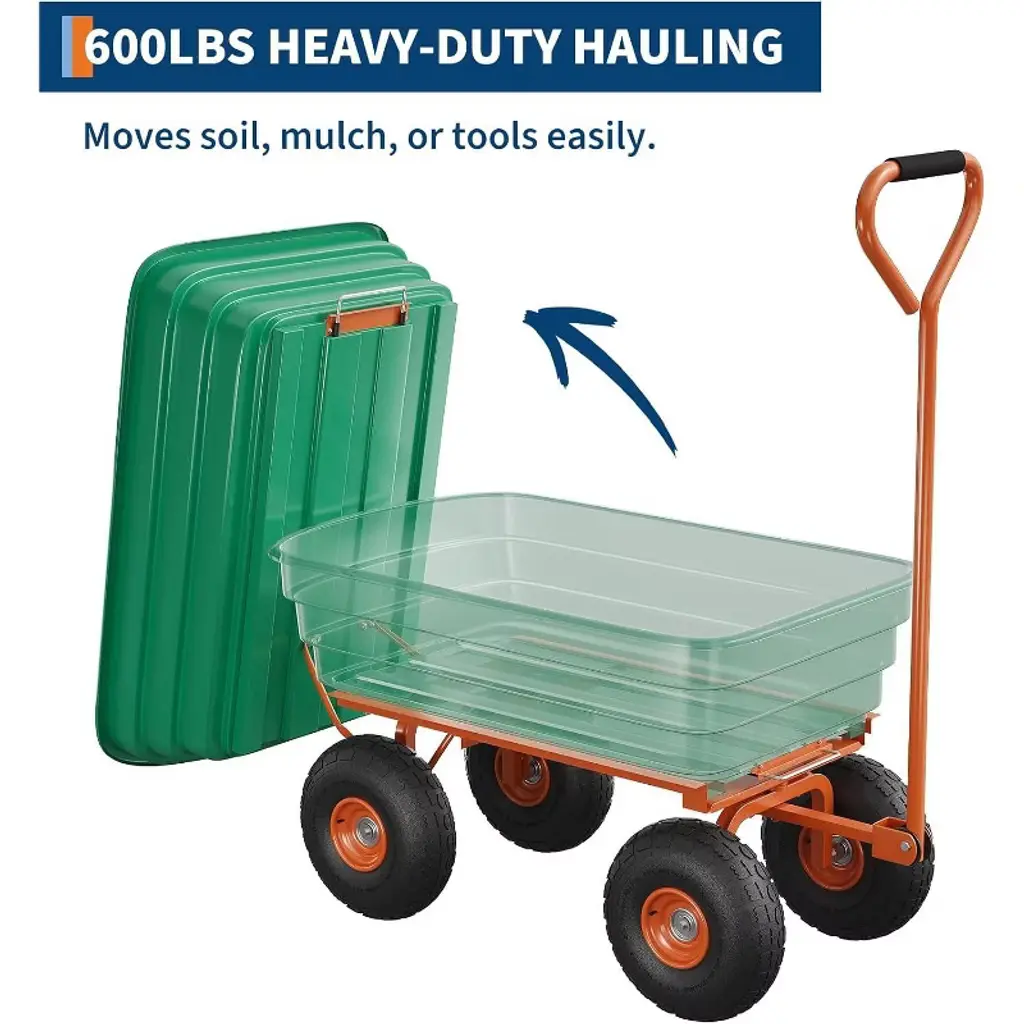 Acekool Poly Dump Cart, 4 Cu.ft. 600lbs Capacity, Quick Release, No-flat 10" Tires, 180° Handle, Rust-resistant Wagon For Landscaping & Garden