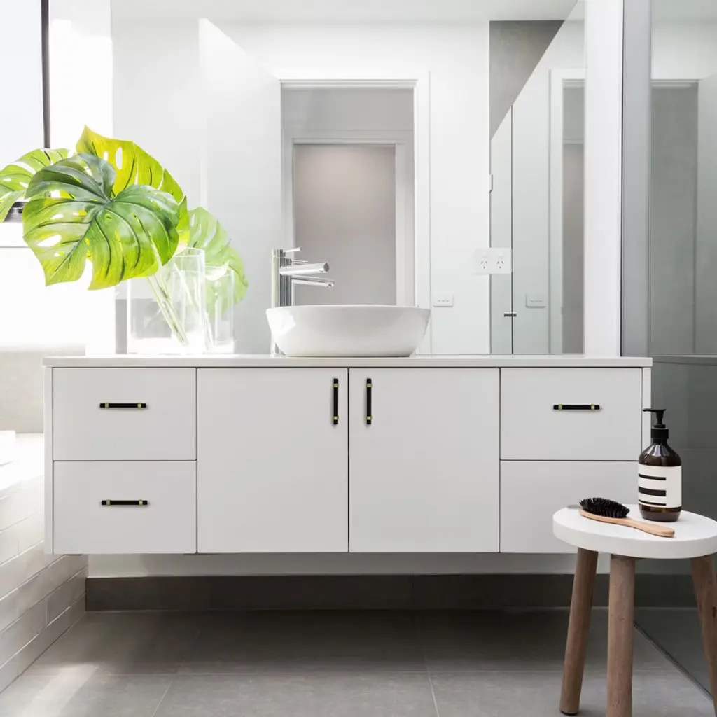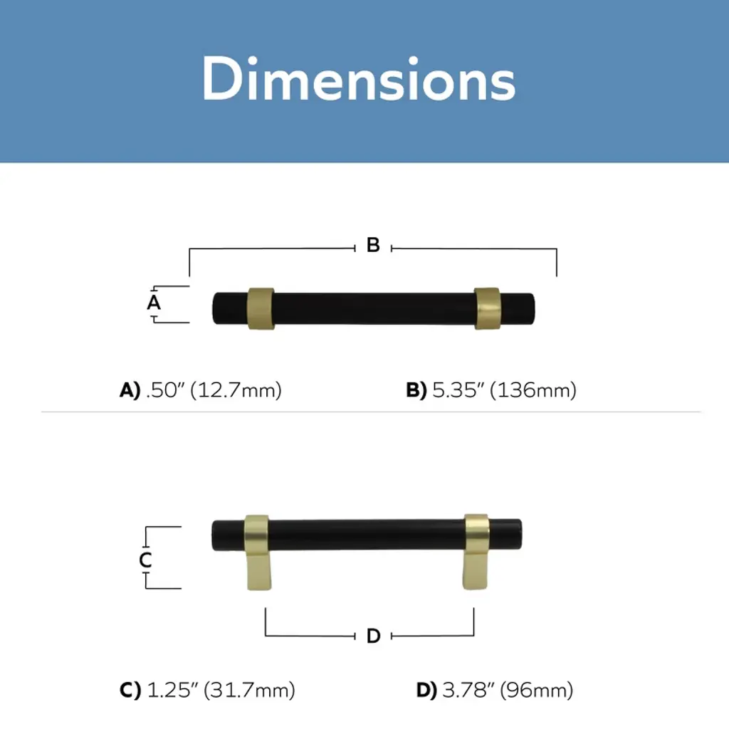 This 3-3/4" 96mm Cabinet Pull is modern and functional for a build or renovation project. Finished in a matte black tube with brass feet, these pulls can be used on cabinets in your kitchen, bathroom or home office for a modern and sleek look. Five pulls are included within the package. The pulls are made for a simple installation process that will add the finishing touch to your cabinets in no time - all hardware is included within the package. Durable and reliable, these cabinet pulls will be a staple in your home for years to come.