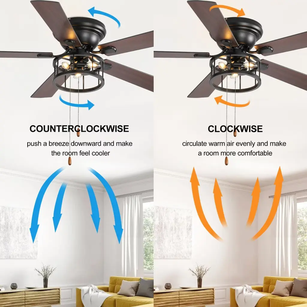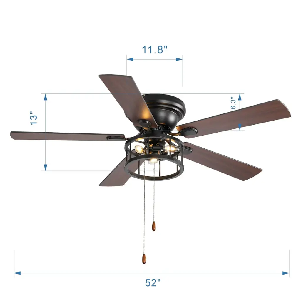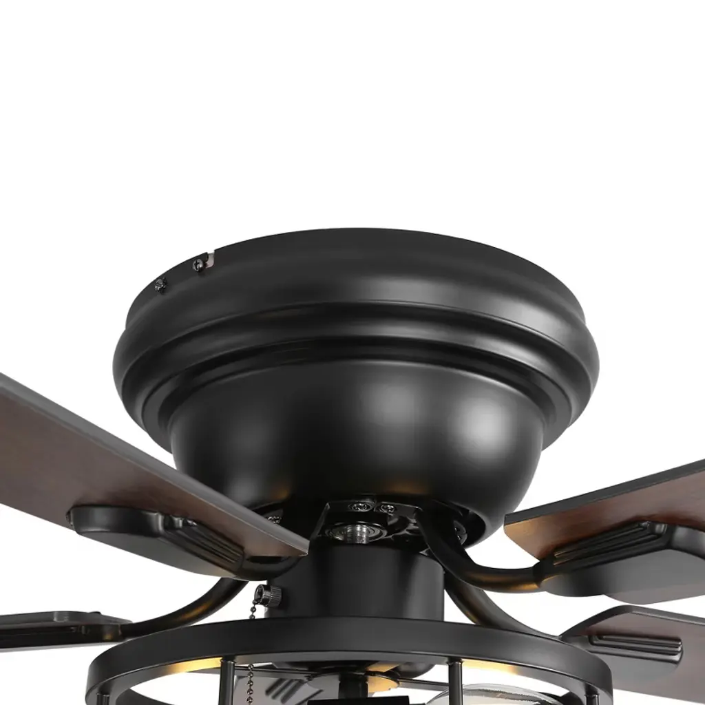 Airsurfer 52" Traditional Pull Chain Ceiling Fan With Iron Light Shade, E12 Bulb, 5 Blades, Ac Motor, 3-speed, Black, Dual Walnut Wood Grain