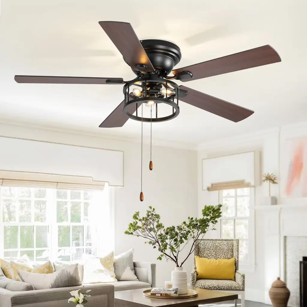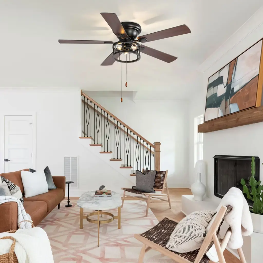 This 52-inch traditional ceiling fan from Airsurfer combines timeless elegance with exceptional performance. The sleek black finish and iron light shade add a sophisticated touch, while the dual walnut wood grain blades provide a natural, warm aesthetic. The fan operates quietly with three adjustable speeds, offering powerful airflow without disruption. Ideal for larger spaces, it not only enhances your room with stylish lighting but also keeps the air circulating comfortably. Perfect for any home looking to combine functionality with classic charm.