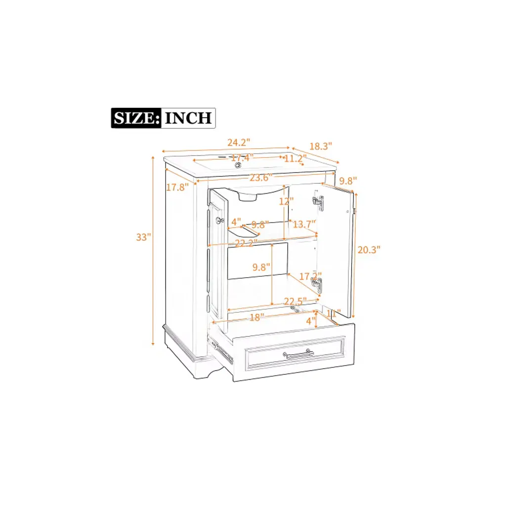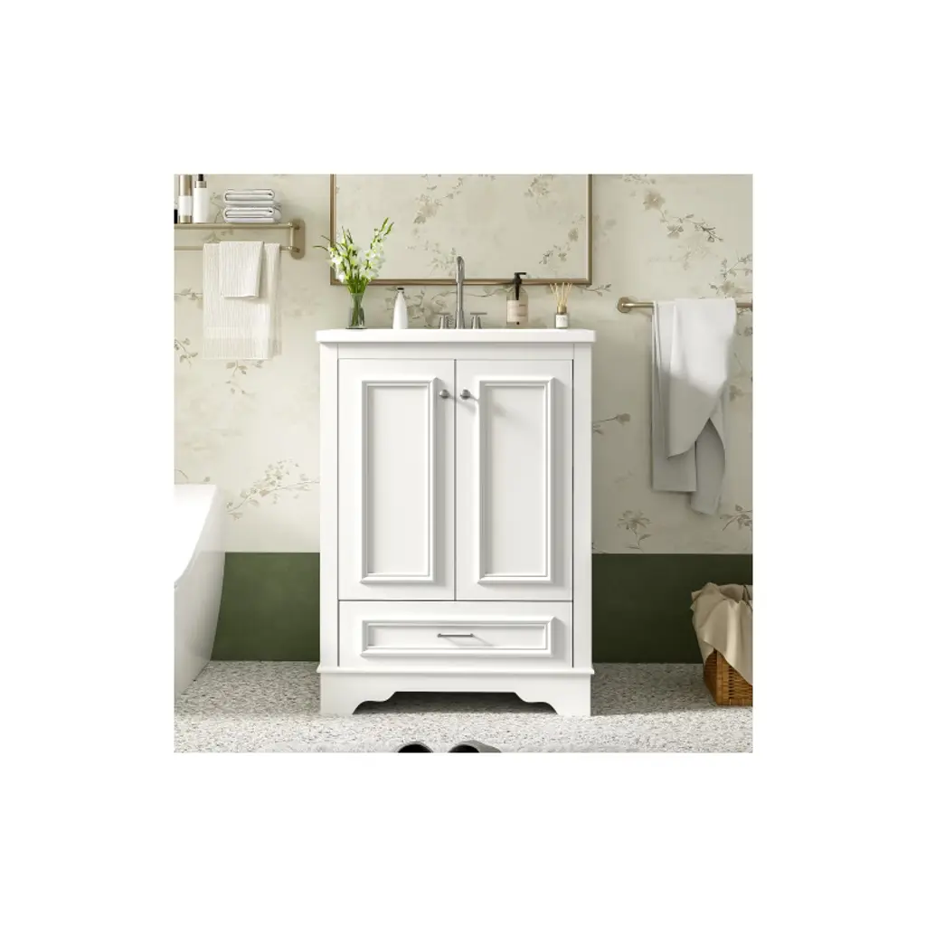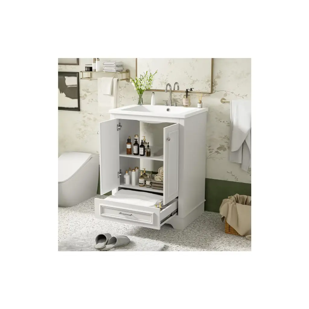Akoasm 24.2 In. W Modern Ceramic Sink Combo Bathroom Vanity With Soft Closing Doors & Silver Handles-white