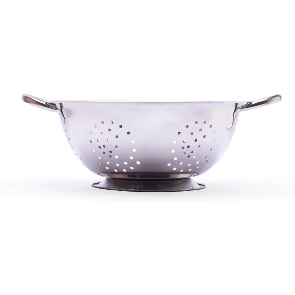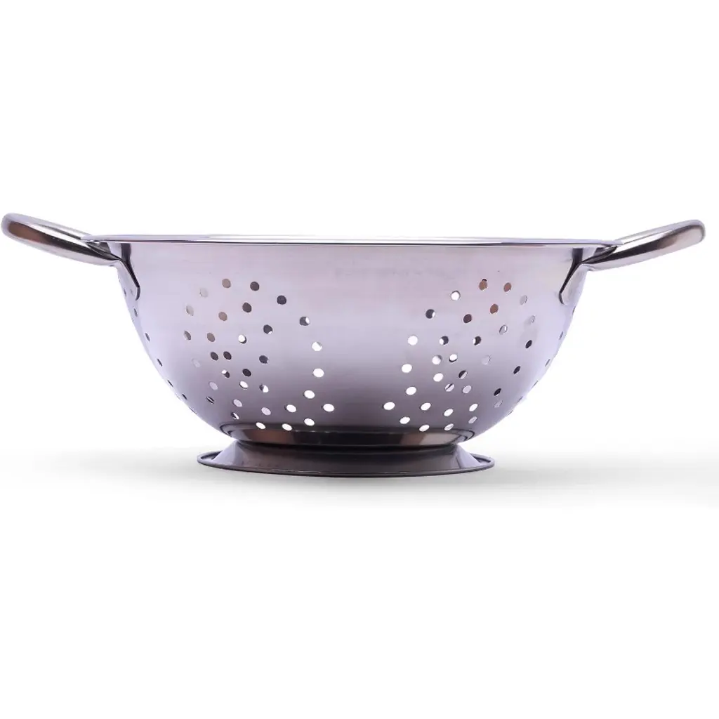 Upgrade your kitchen with the Amco 3-piece stainless steel colander set, designed to handle all your rinsing, straining, and draining needs. Featuring 1.5, 3, and 5-quart capacities, this versatile set is ideal for everything from washing delicate berries to draining large portions of pasta and vegetables. Made from professional grade stainless steel, these colanders are built to last, resisting rust and maintaining their durability even with daily use. Their perforated design ensures rapid water drainage, preventing pooling and making meal prep more efficient. The easy-to-grip handles provide a secure hold, allowing for seamless food transfer without spills or mess. Stackable for compact storage, this set easily fits into any kitchen space without clutter. Whether you're a home cook or a professional chef, these colanders bring convenience and reliability to your kitchen. Plus, they’re dishwasher safe, making cleanup quick and hassle-free. Designed for versatility, the Amco stainless steel colander set is perfect for draining pasta, washing fresh produce, or preparing crisp salads. A must-have addition to any kitchen, this set delivers both function and durability in a sleek, space-saving design.