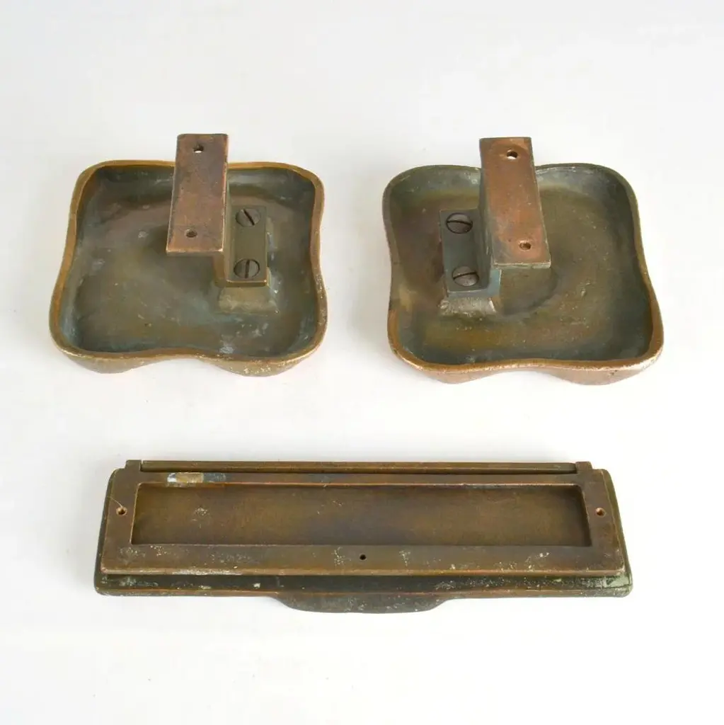 Architectural Bronze Square Push Pull Door Handles With Letterbox Set, 1970s, Set Of 3