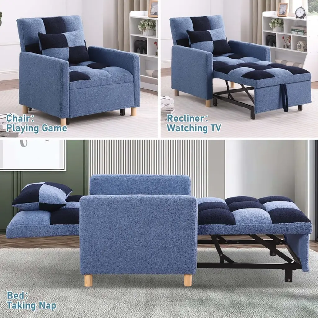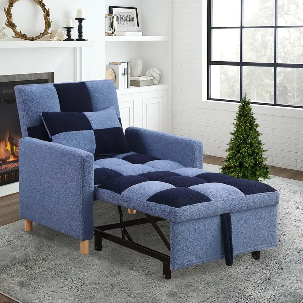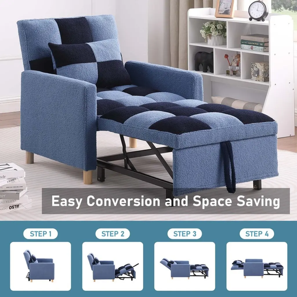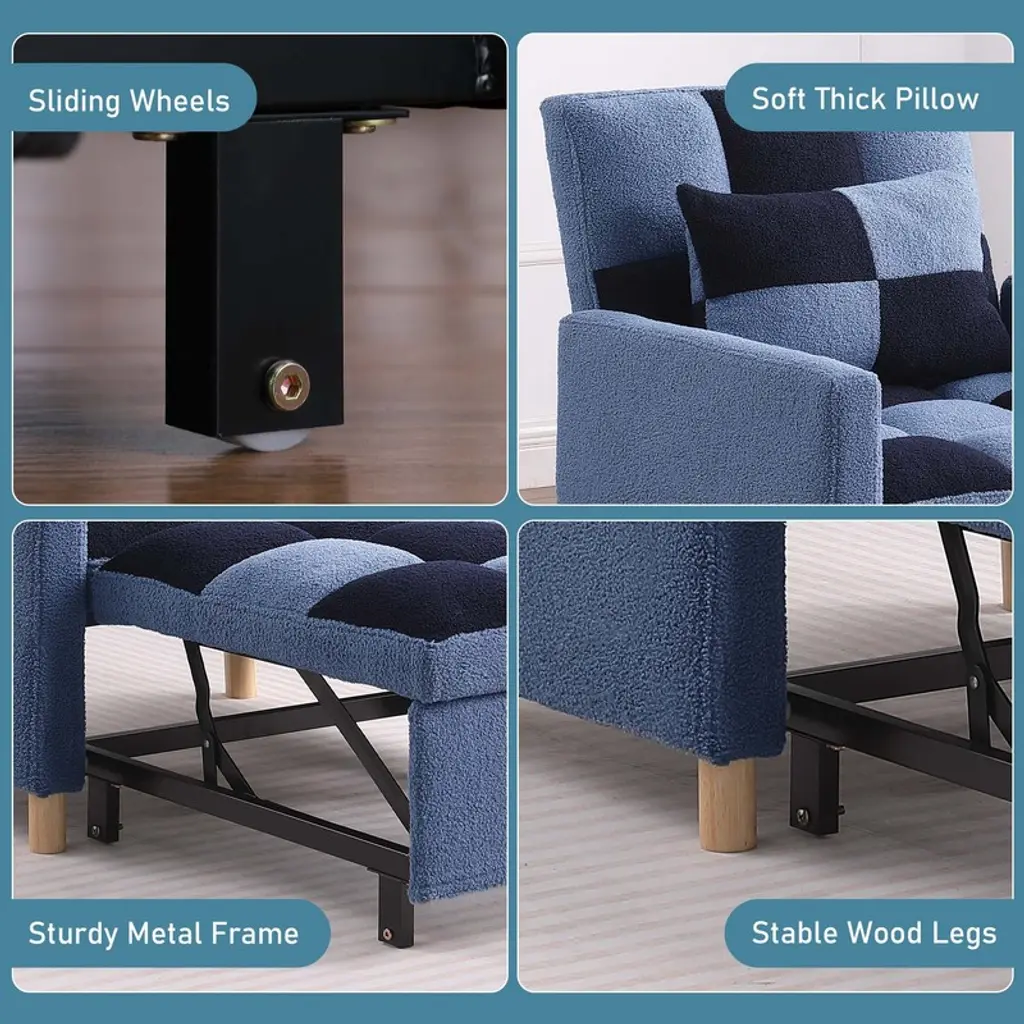 Aukfa Pull Out Sofa Chair, Convertible Sleeper Futon Chair Bed, Patchwork Teddy, Blue/navy