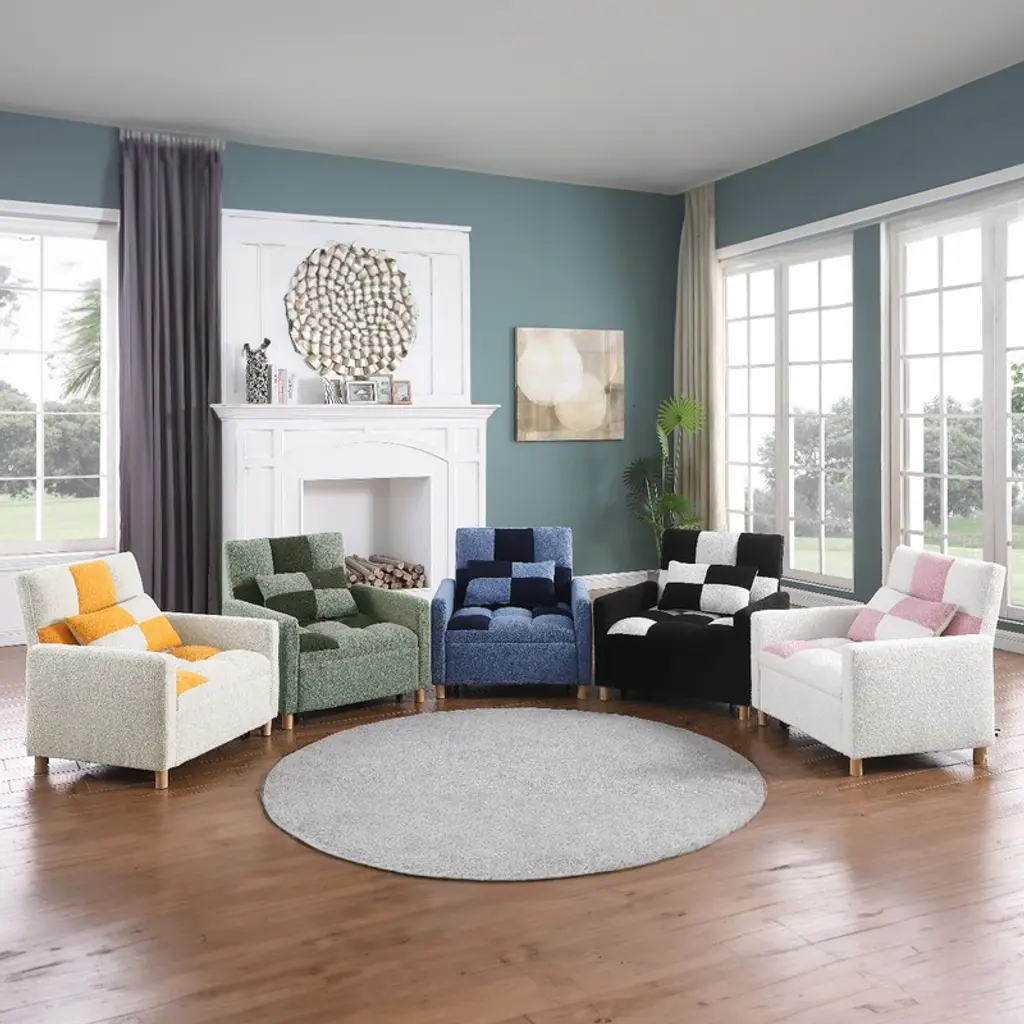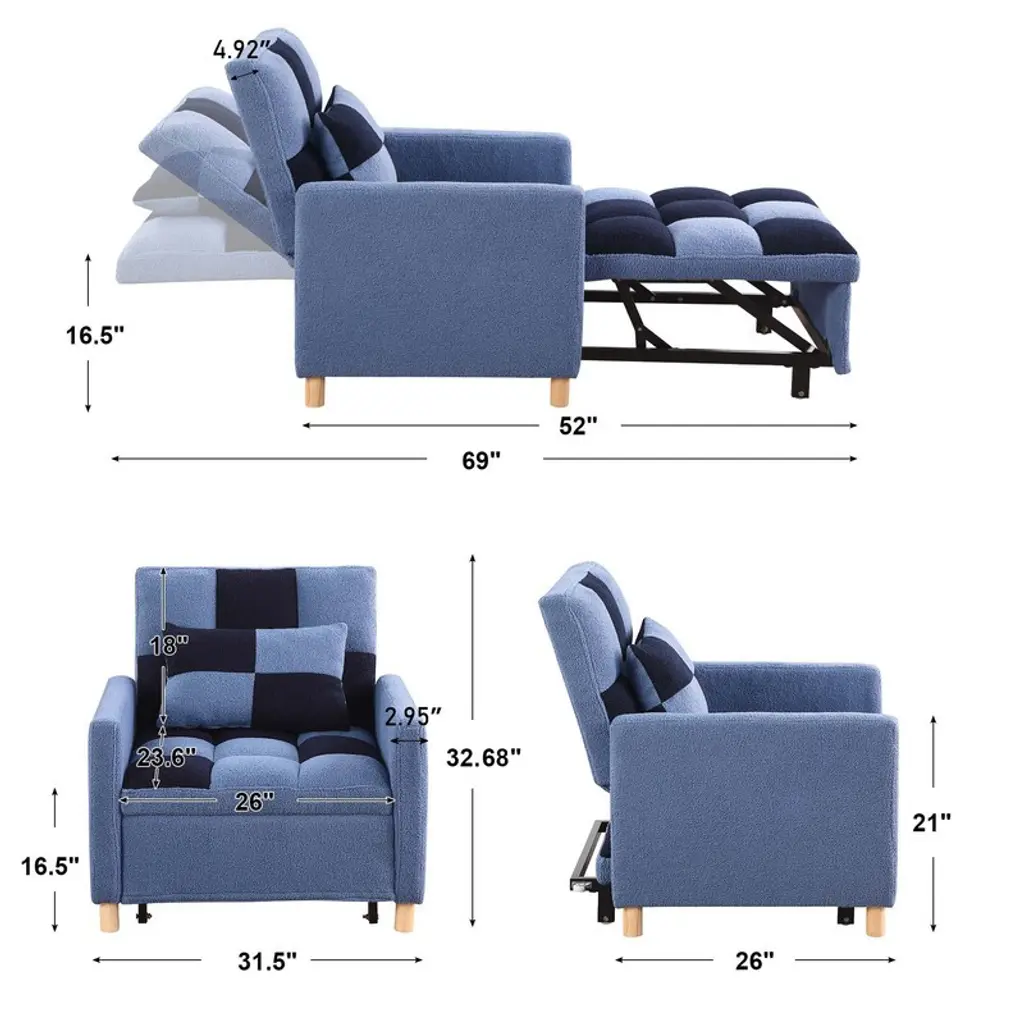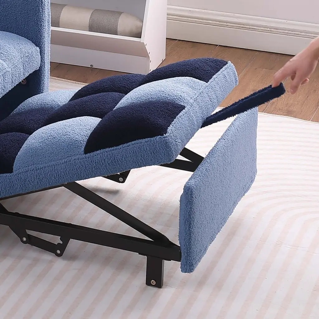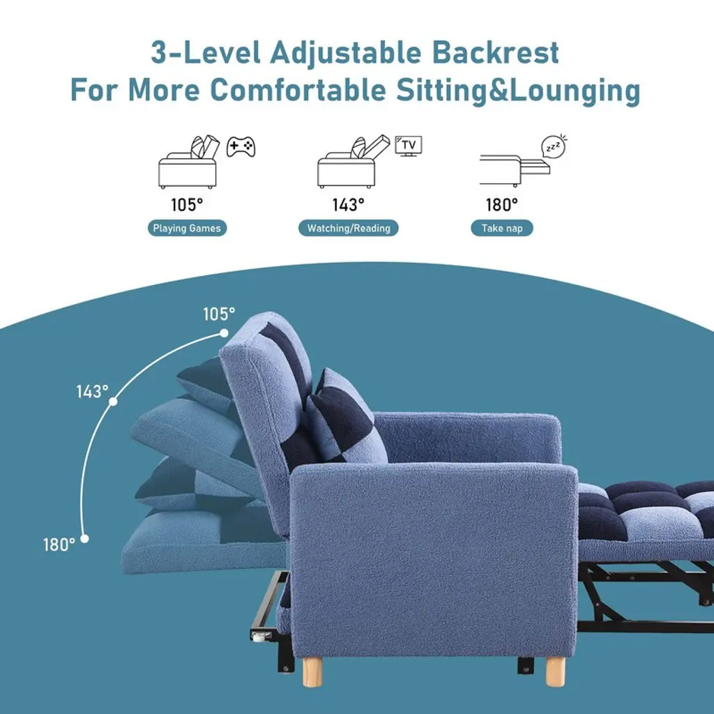 Aukfa Pull Out Sofa Chair, Convertible Sleeper Futon Chair Bed, Patchwork Teddy, Blue/navy