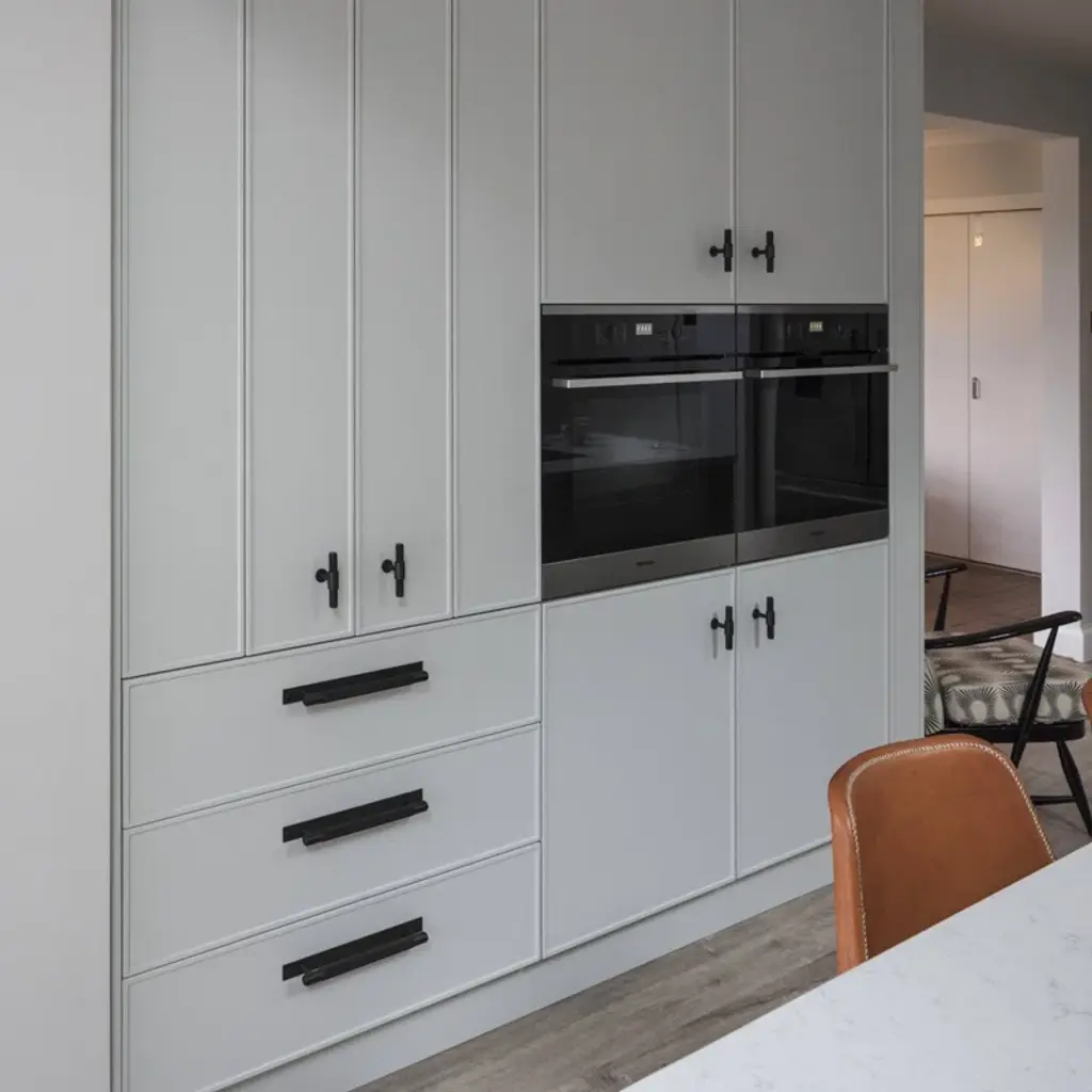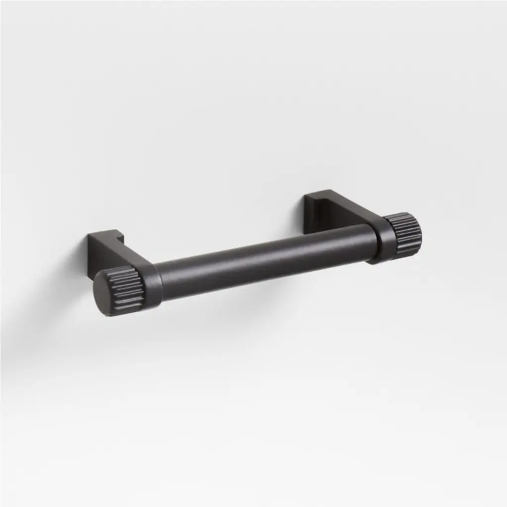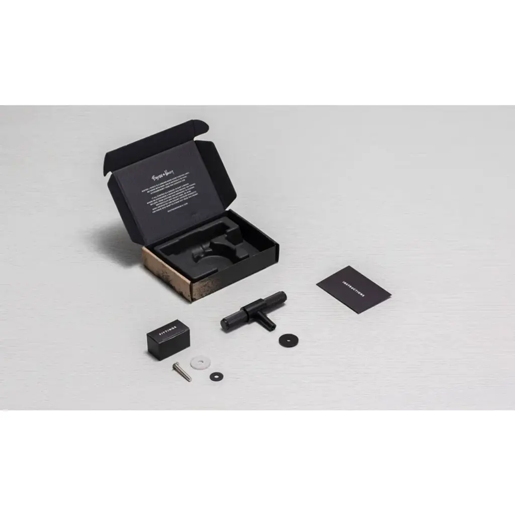 A T-bar made from solid black anodised metal. This T-bar features our signature, diamond-cut, cross-knurl pattern and is refined by hand. They work great on cabinet doors, cupboards, kitchen units and just about anything that can open.