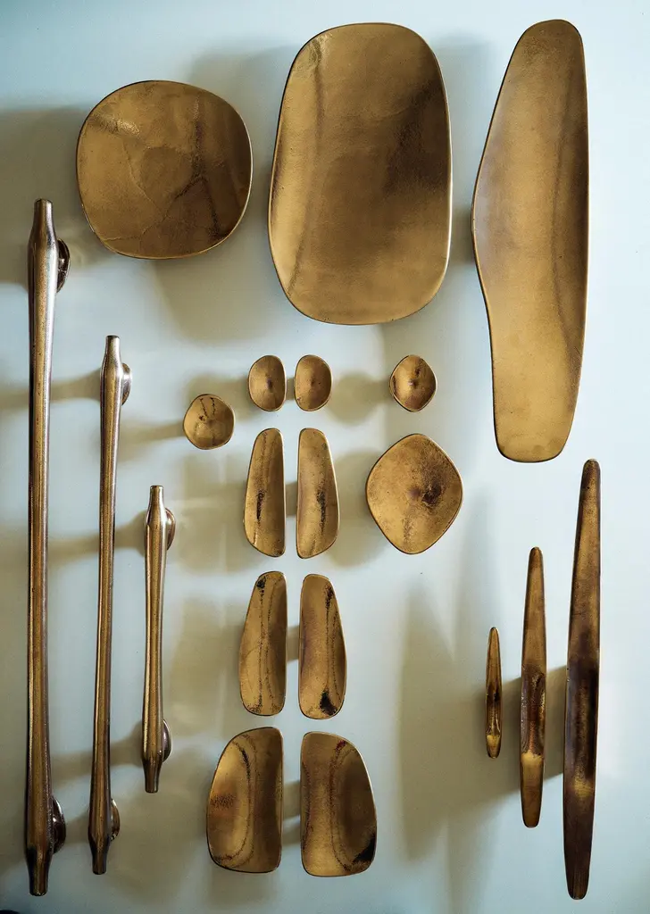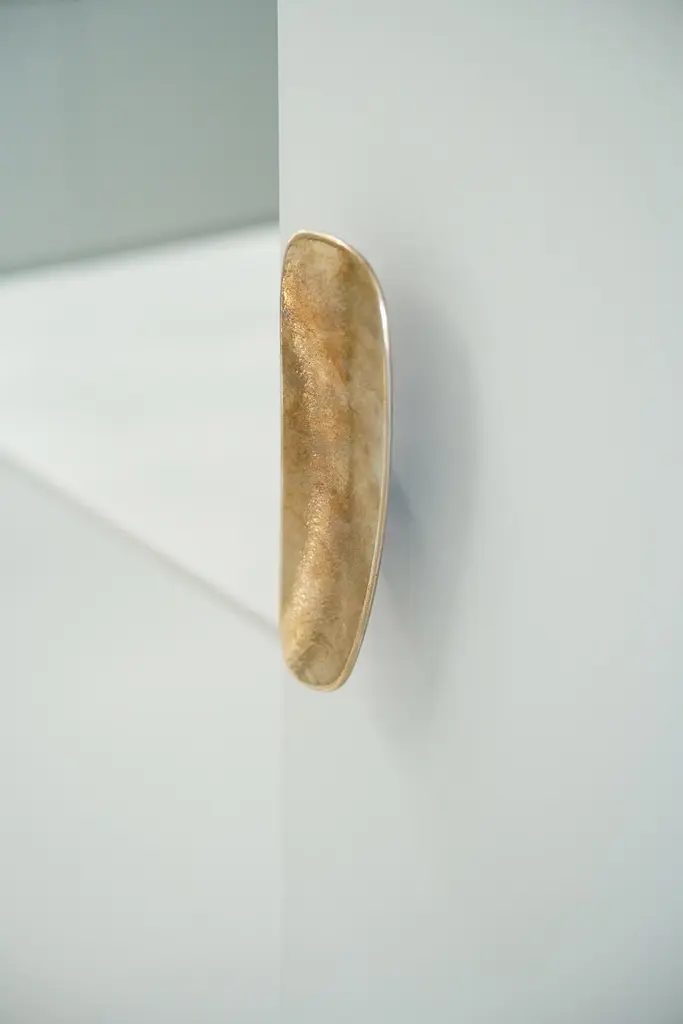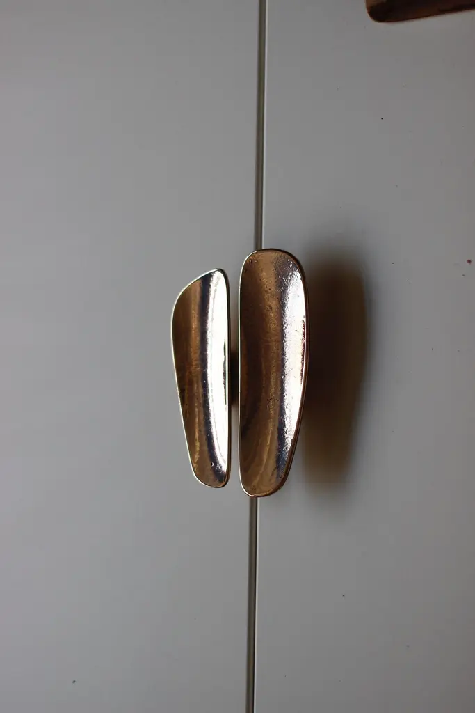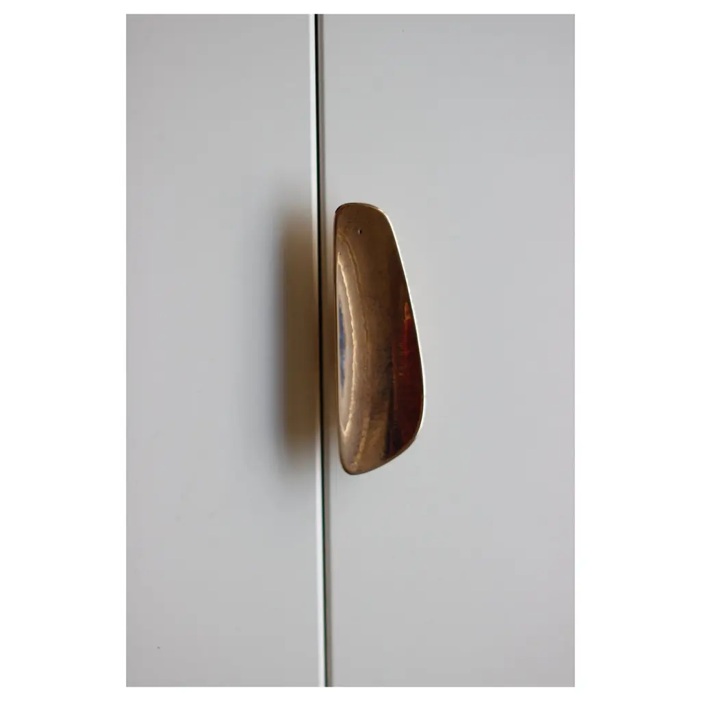 The Fermat Cabinet Handle range provides a tactile and beautiful addition to interior spaces. Designed to be applied to cabinets and internal doors, these soft forms are a pleasure to handle. Sand cast in solid bronze and finished by hand, the joinery pulls are luxurious and enduring. Mounting options include single-sided, back to back and Left and Right side by side. Can be combined in symmetrical and asymmetrical pairs. 4 sizes available; Mini, Small, Medium, Large. This listing is for the SMALL Size. 170 x 55 x 30mm6.7 x 2.2 x 1.2 inchesAvailable in the following finishes: -Polished-Rough Cast Polished-Satin-Blackened Polished-Rough Cast Polished Blackened(See image 9 for finishes) solid bronze will naturally patina in time. Image 2 displays a Medium on the left and Small on the rightImage 3 displays a Medium on the left and Small on the rightInamge 5 shows, from left to right, the Large, Medium and Small Fermat Cabinet Handles.