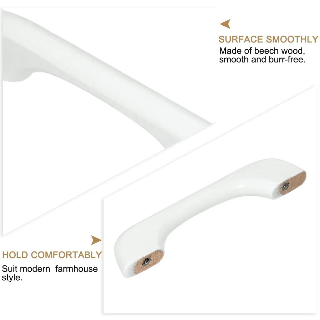 Beech Wood Cabinets Drawer Pulls Handles, White - White-2Pcs - 5.04"