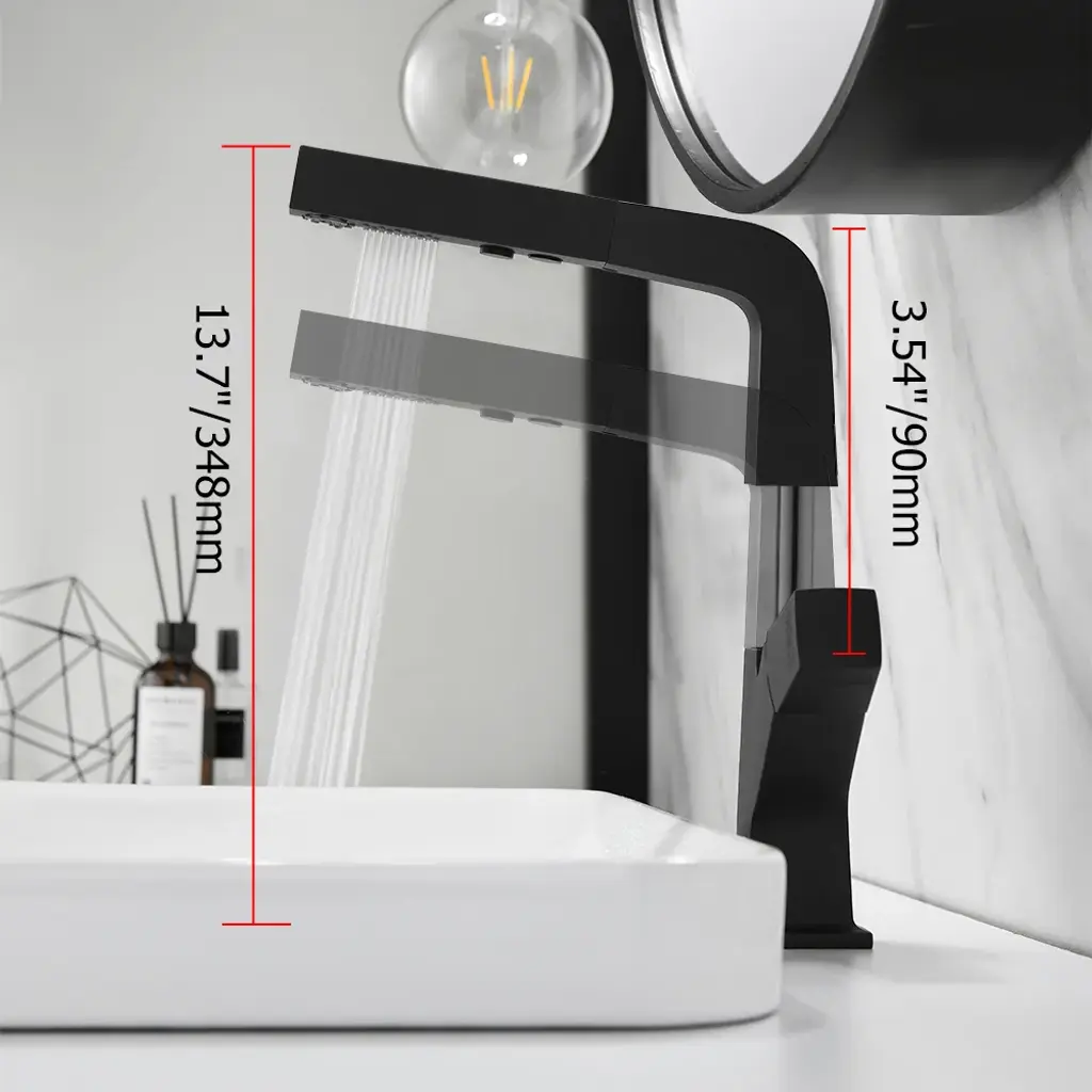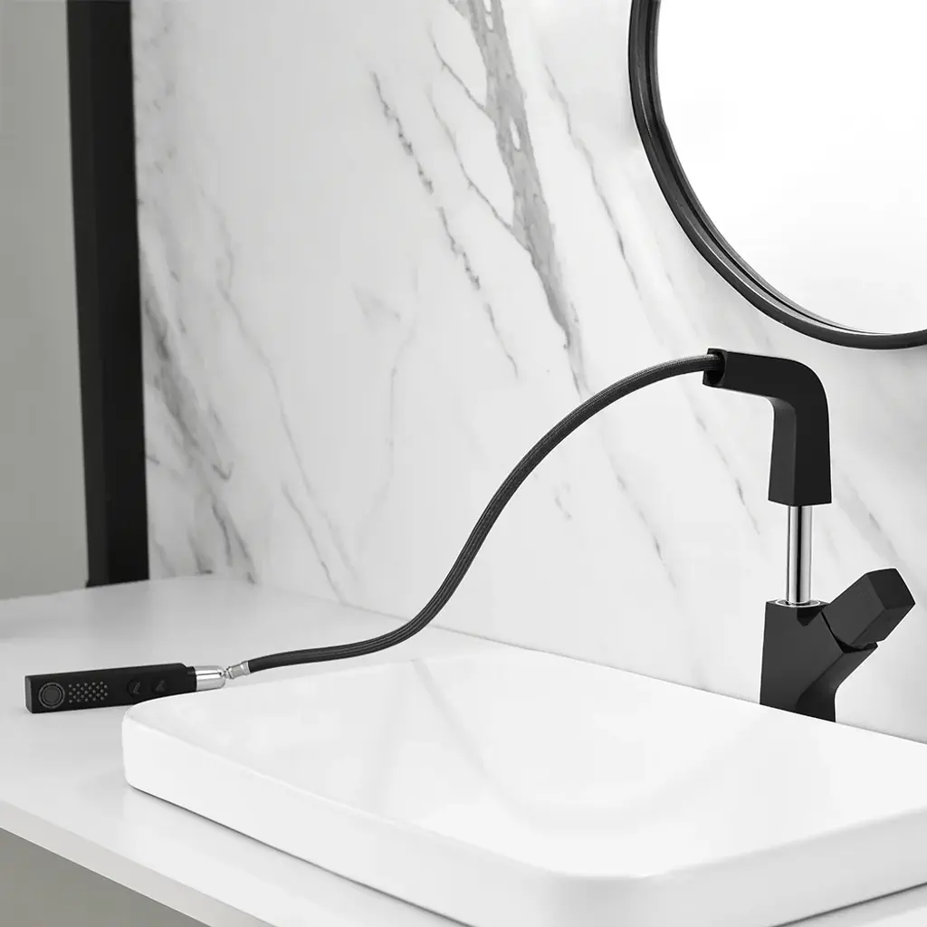 Black Modern Single Hole Bathroom Sink Faucet Dual Function Pull-Out Spray Faucet