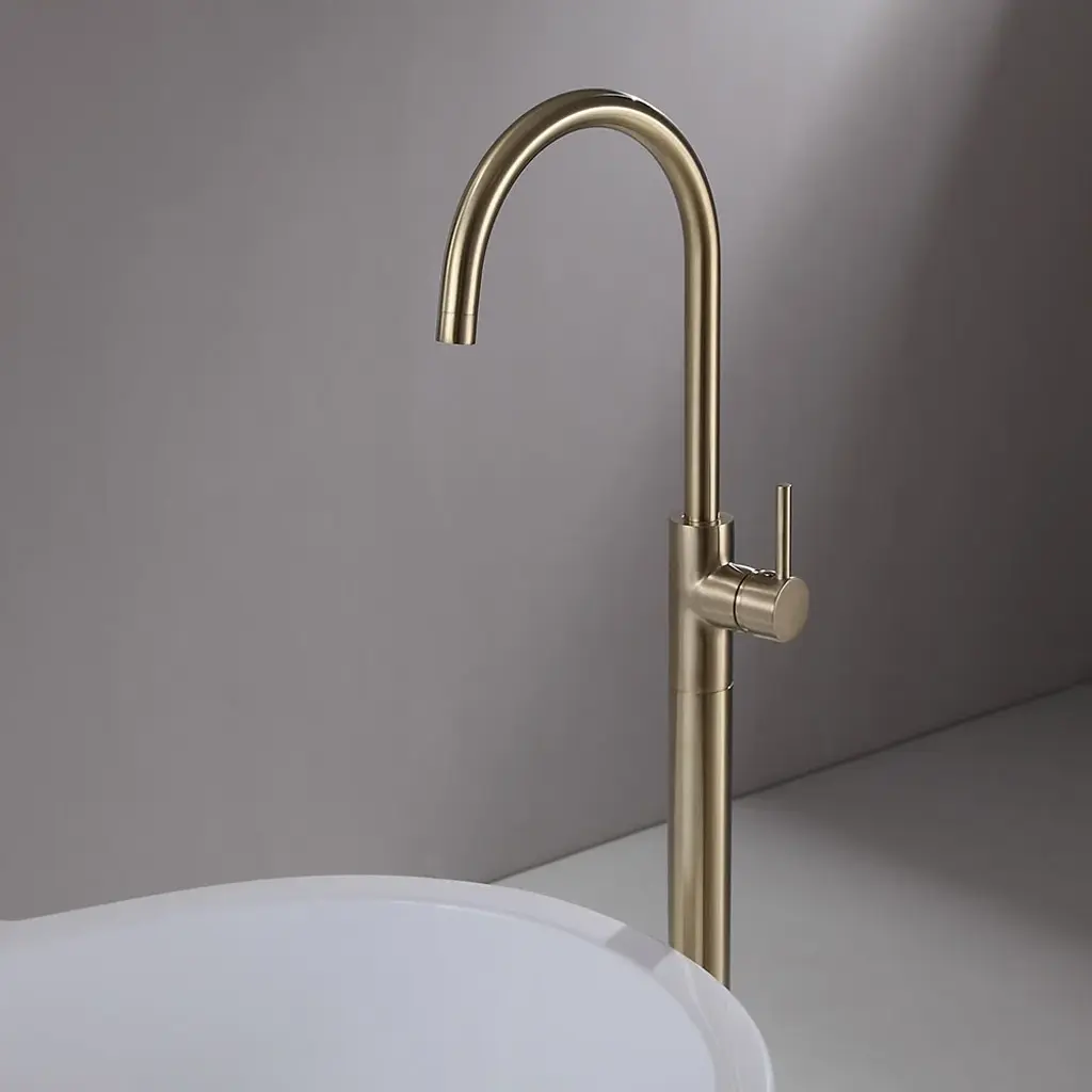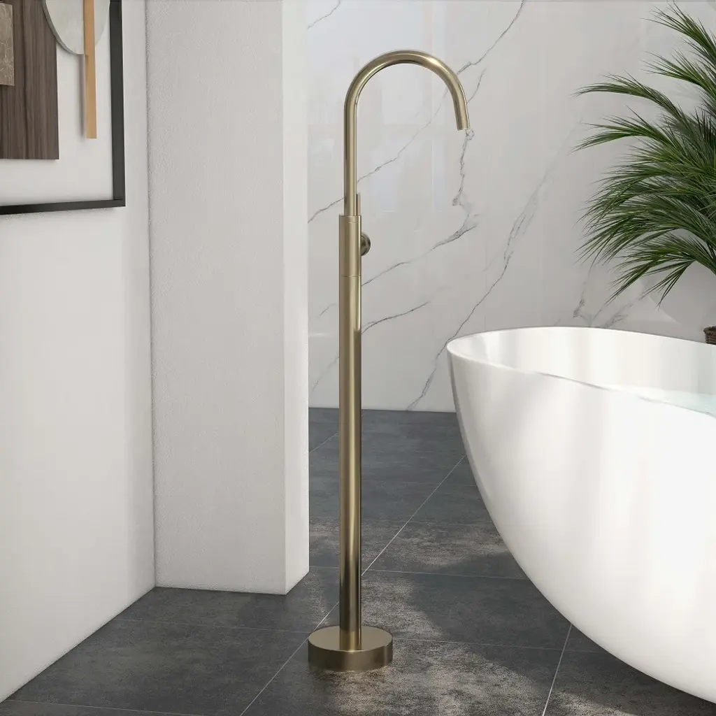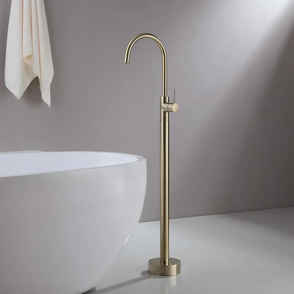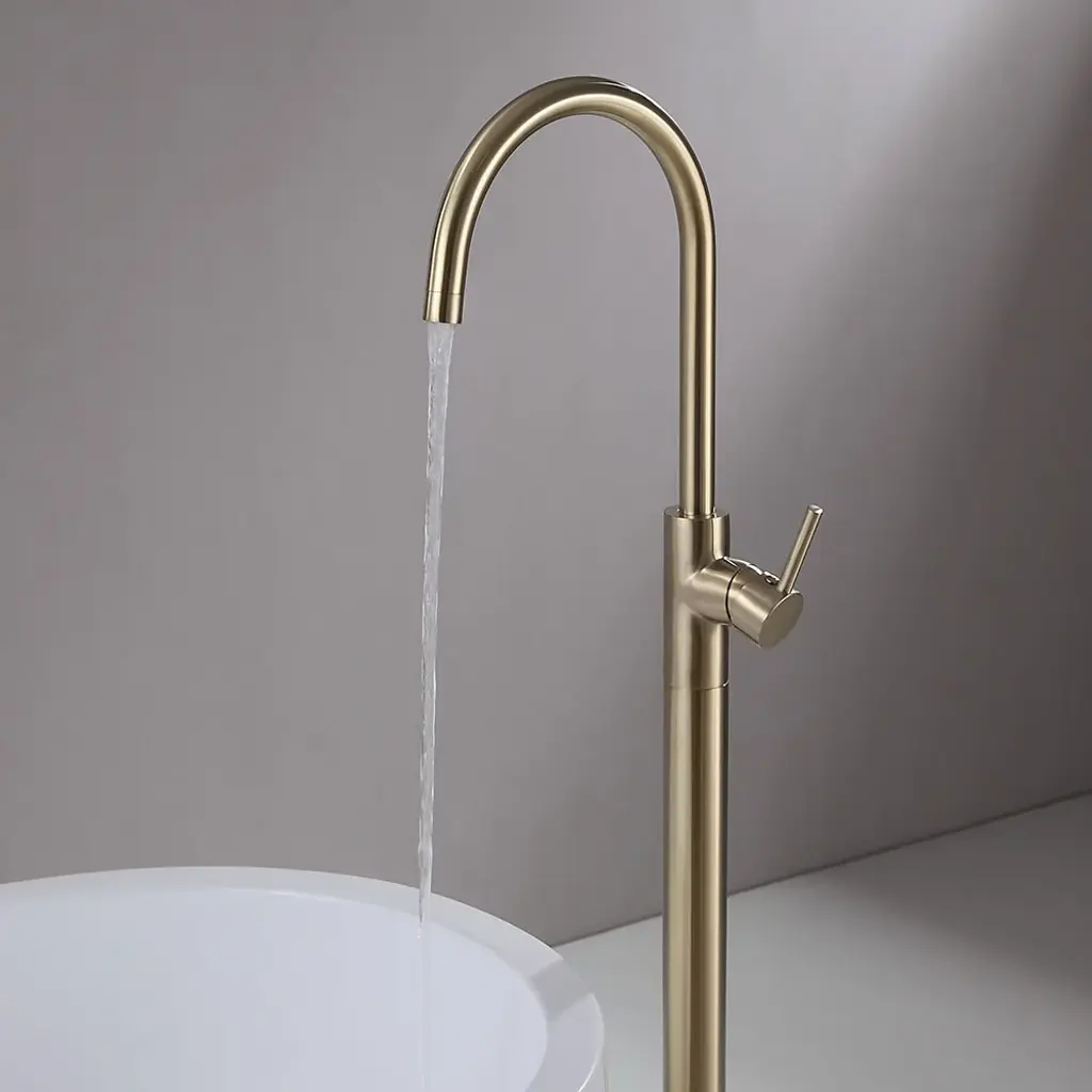 Brewst Solid Brass Single Handle Modern Floor Mounted Tub Filler Spout Faucet