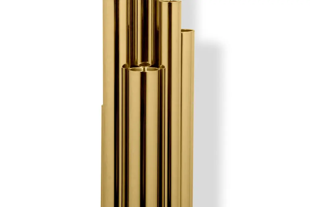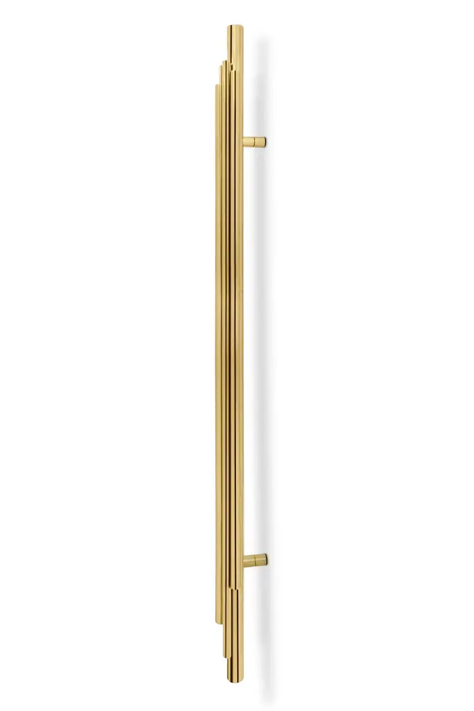 Brubeck Door Hardware is composed of asymmetrical Polished Brass tubes, creating an artistic series of furniture and Door Handles. This Door Pull takes inspiration from Deligthfull's most luxurious lamps. Adorn your luxury doors with Brubeck Mid-Size Door Pulls.
