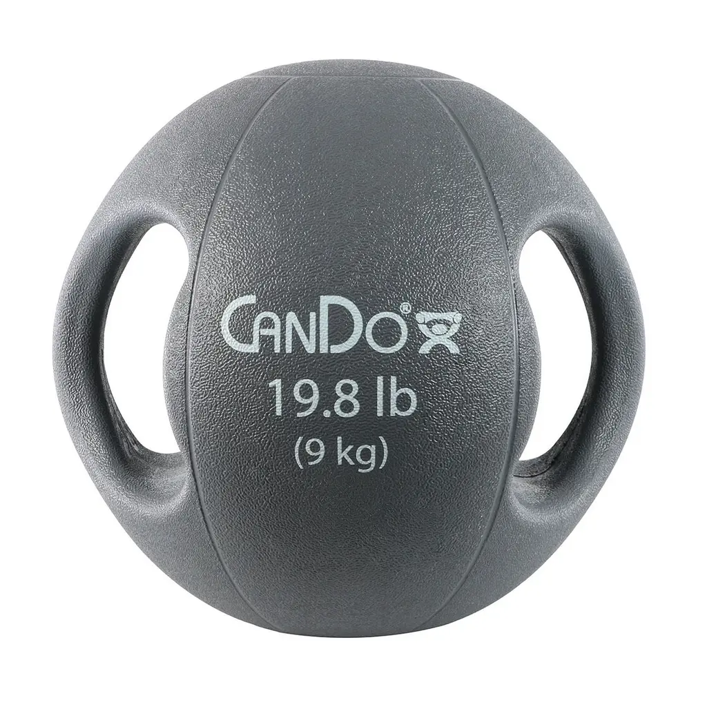 Cando® Molded Dual Handle Medicine Ball - 19.8 Lb (9 Kg) - Silver - Black