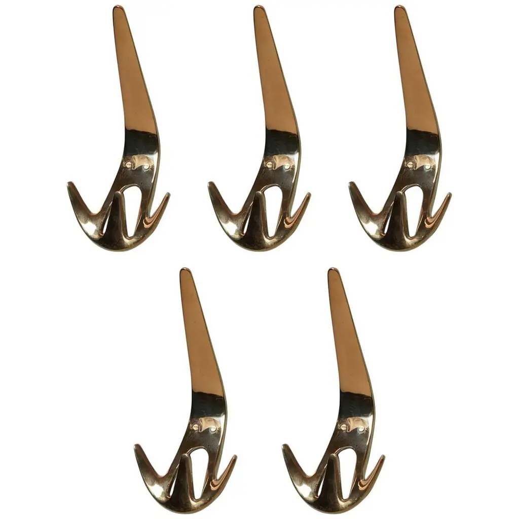 Carl Auböck Model #9031-1 polished brass drawer pull.Designed in the 1950s, this versatile and Minimalist Viennese drawer pull is executed in polished brass by Werkstätte Carl Auböck, Austria. Its minimalist design combines clean form with functionality.Produced by Carl Auböck IV in the original Auböck workshop in the 7th district of Vienna using the same exacting standards, high-quality materials, original molds and techniques of his legendary namesake. Auböck's design career was long and varied, reaching its pinnacle of prestige at the Triennale di Milano in 1954, where he received four gold medals in recognition of his iconic work.Price is per item. Available in unlimited quantities and in two sizes. This listing is for the larger size. Double thread mounting via two screws on back (included).4 in stock and ready to ship. Out of stock lead time 2-3 weeks or more. Inventory availability is subject to change at any time without notice. Please note that only one representative example of each item is shown in the images. Finish varies from item to item due to the handmade nature of their fabrication.Made to order. All sales are final.