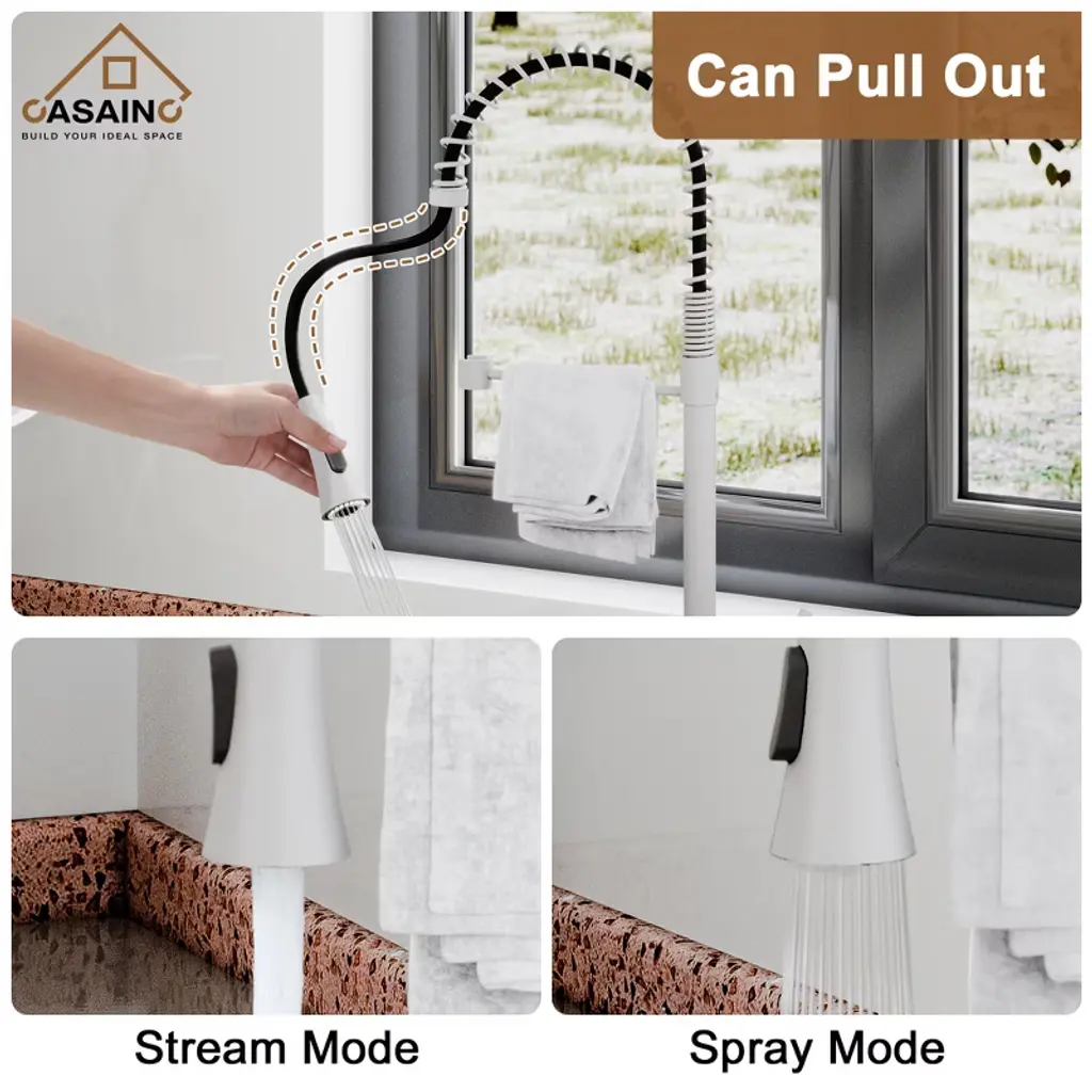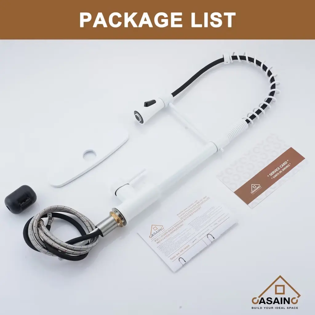 Casainc Deck Mounted 1-hole Single Handle Pulldown Kitchen Faucet, Matte White