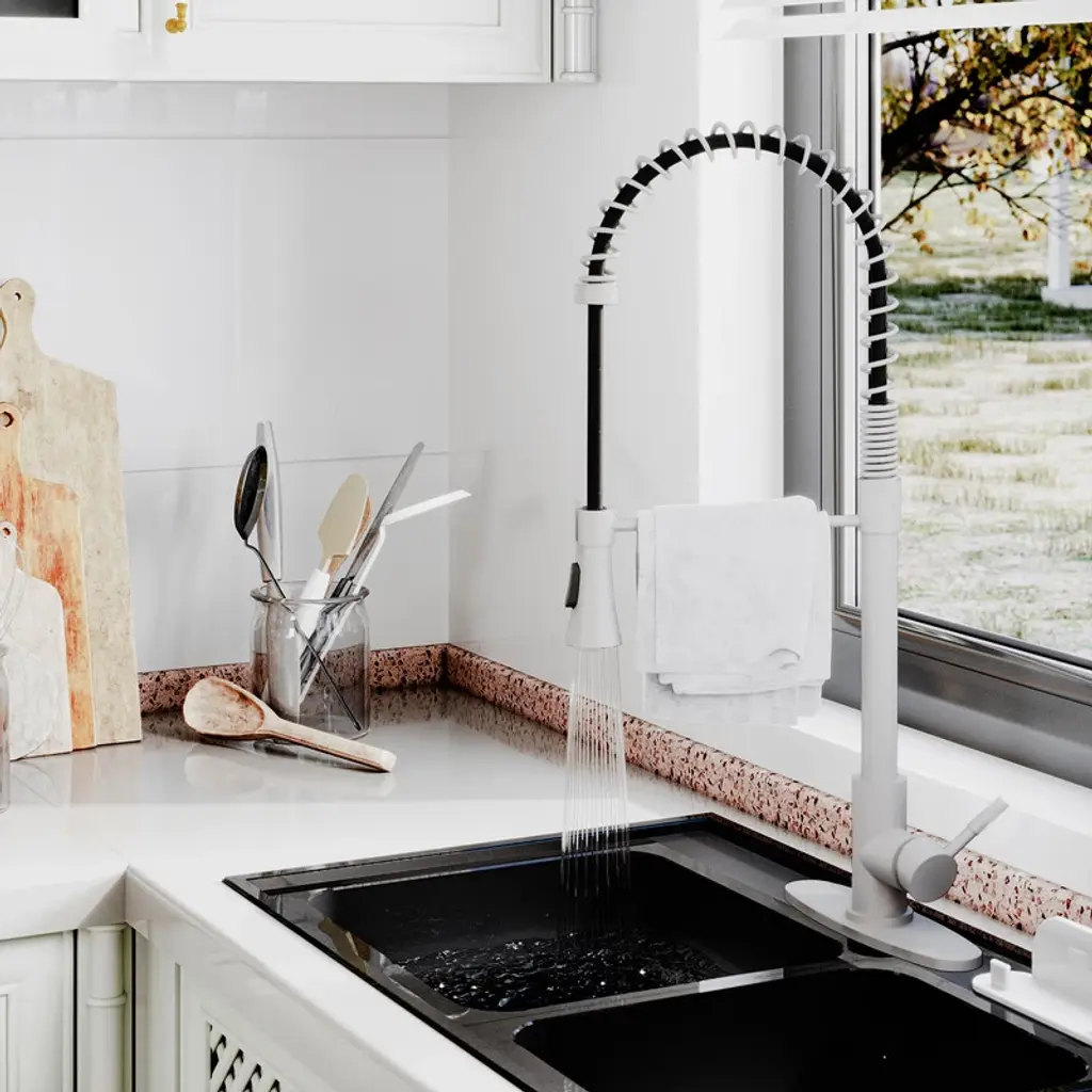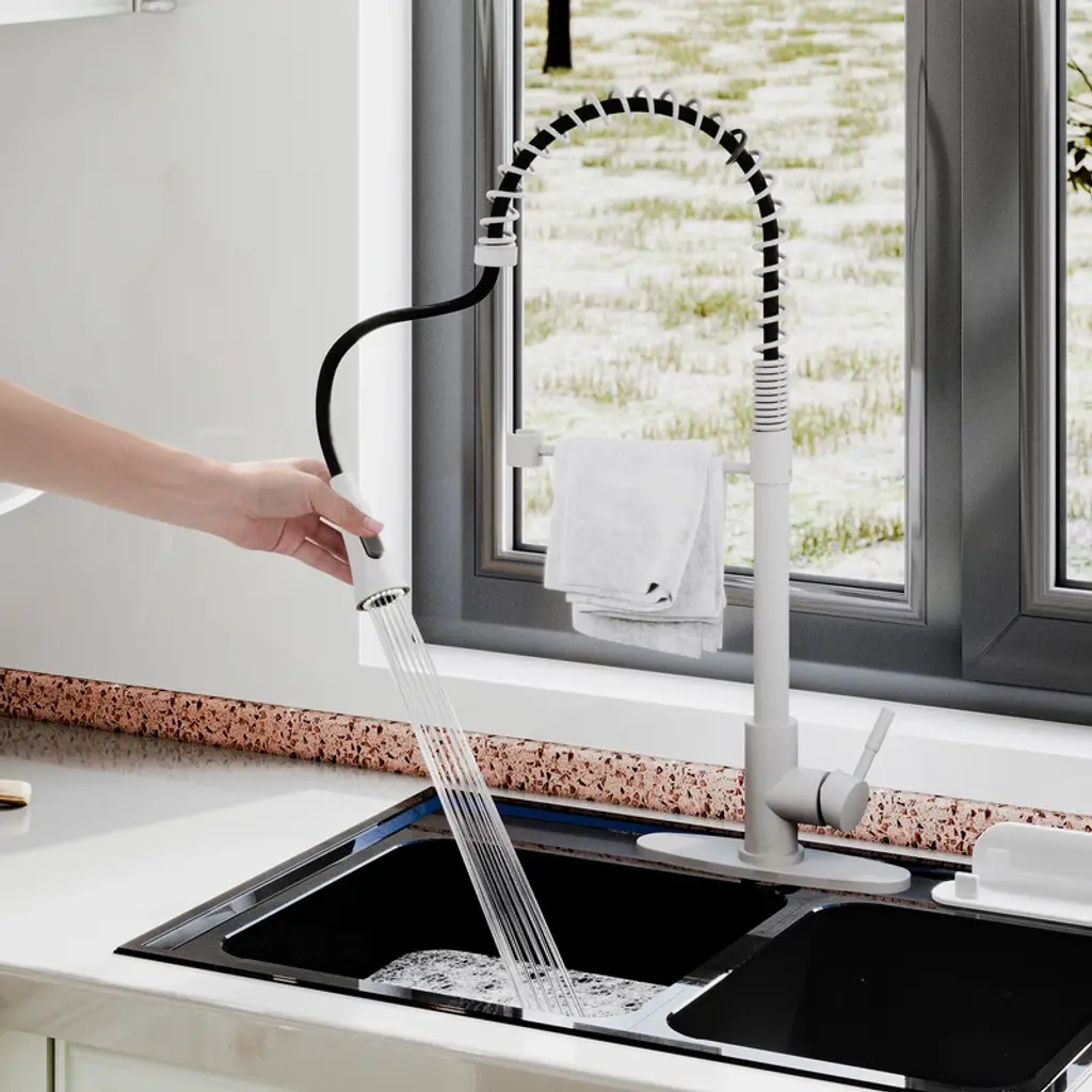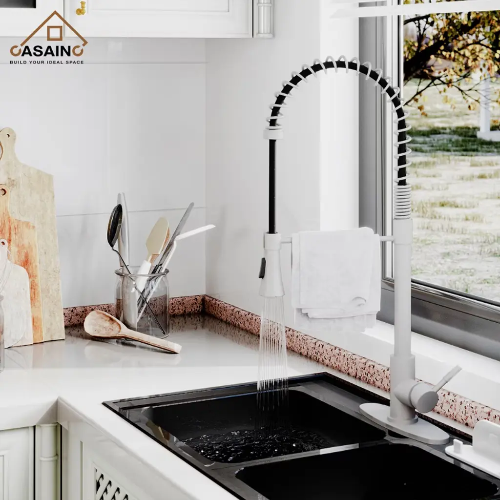 The kitchen faucet from CASAINC updates your kitchen with its sleek style and superior functionality that is essential in every kitchen. Easy to use with a single-handle design, this faucet has a convenient dual-function Spring pull-down spray head that provides maximum flexibility for all your kitchen tasks and allows you to clean every hard-to-reach corner of your kitchen sink. It is easy to install in kitchens with 1 or 3-holes in the sink, making it the perfect choice for any faucet refresh.