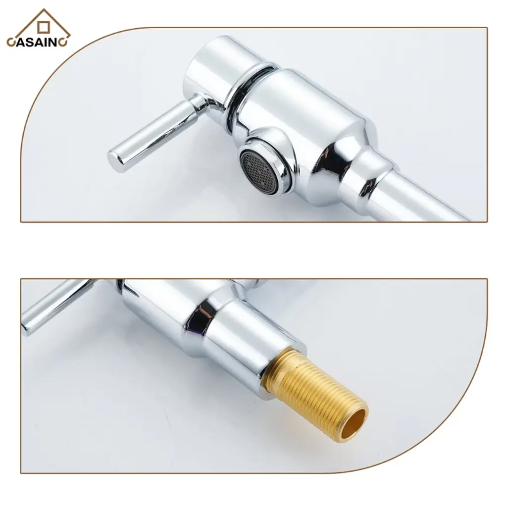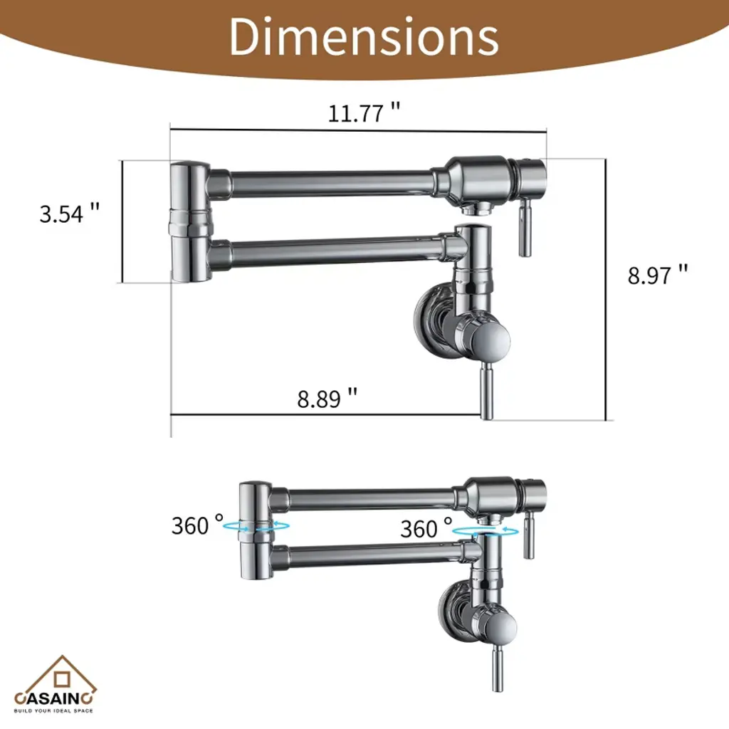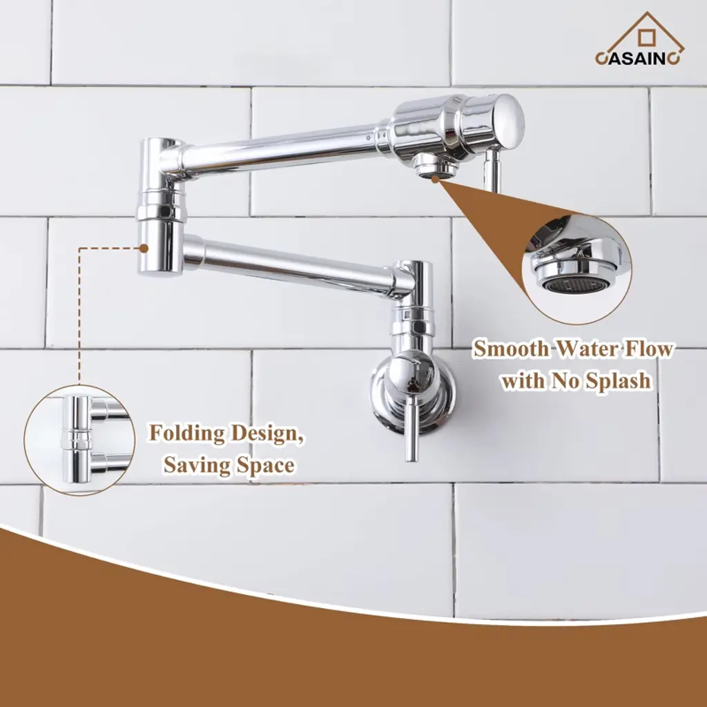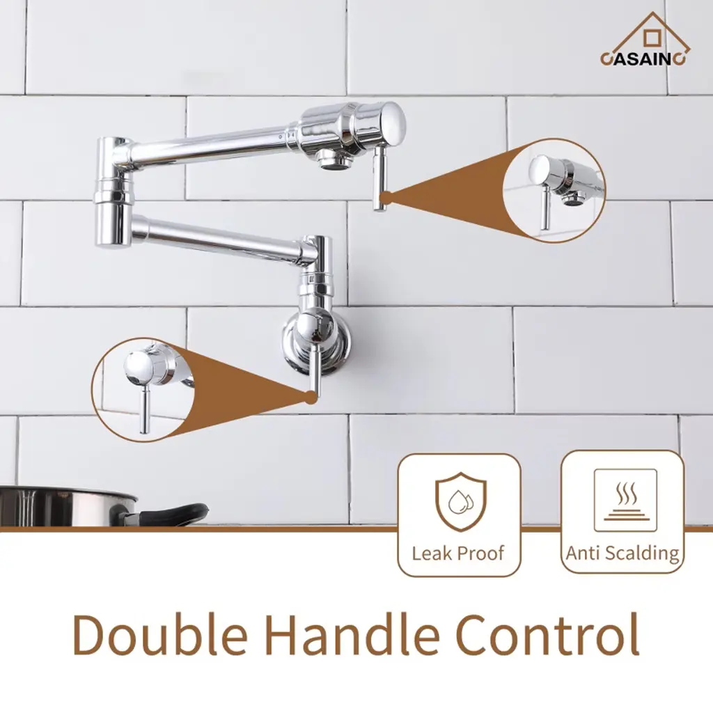 Casainc Wall Mount Kitchen Pot Filler Faucet With Double Handle Swing Arm Spout, Chrome Plated