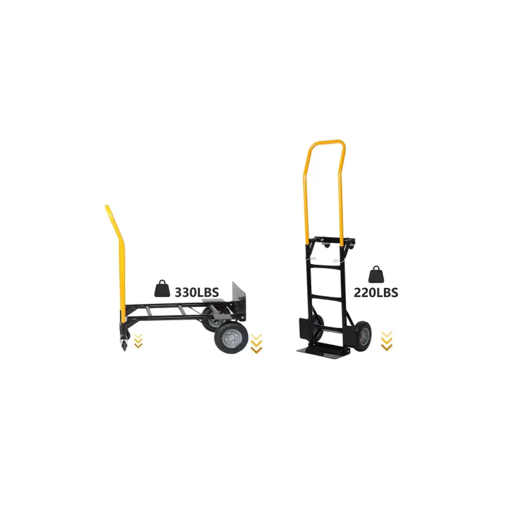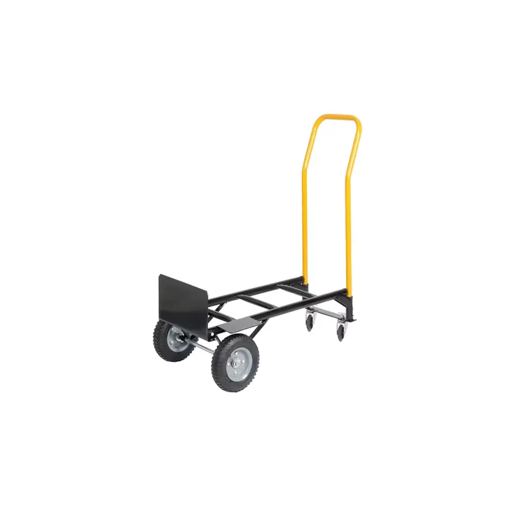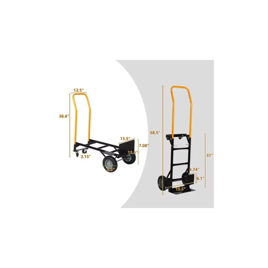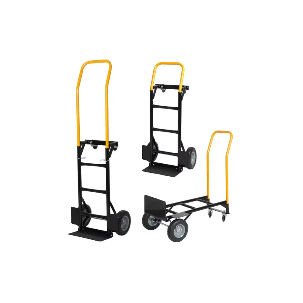 This 2-in-1 convertible hand truck easily transforms from a two-wheeled dolly to a four-wheeled platform cart, making it a versatile solution for moving heavy loads in warehouses, gardens, offices, and more. Built with durable metal construction and equipped with high-quality wheels, it delivers strength, stability, and smooth mobility.