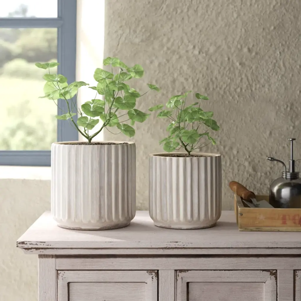 These plain cement forms with a wide ribbing pattern, the Chandler pots were made for the industrial space. Add some lush greens for a touch of life, and watch them grow.
