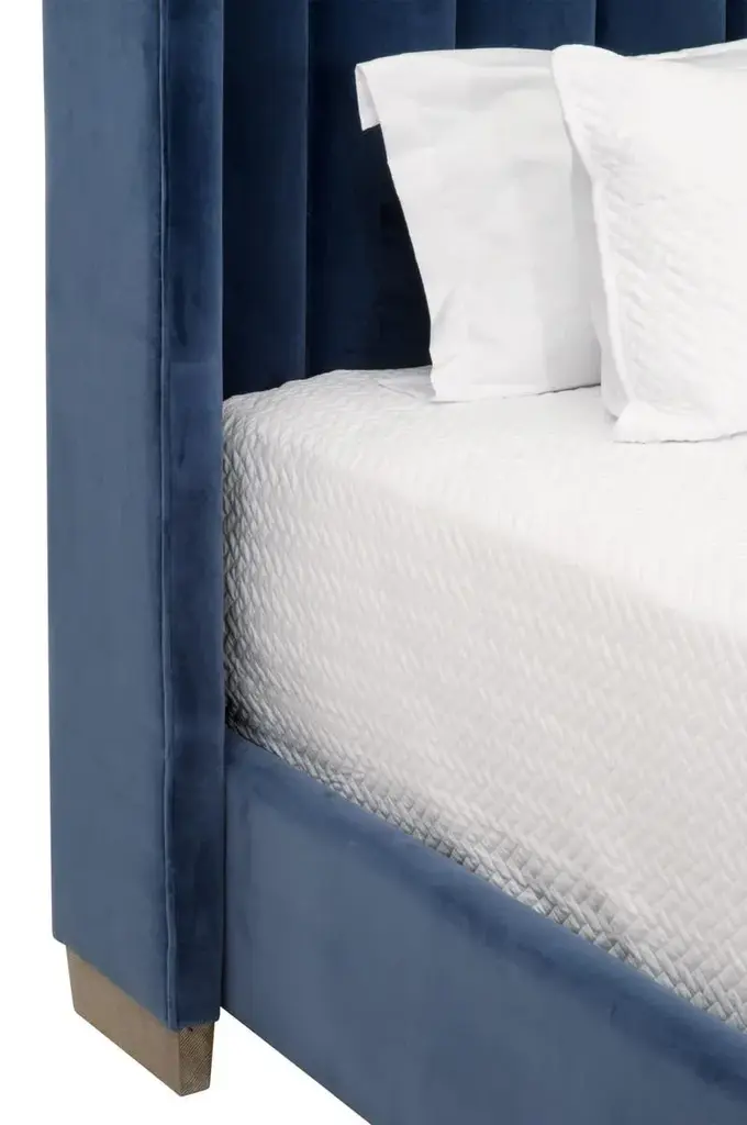 Chandler Twin Bed Revitalize your bedroom aesthetic with the Chandler Twin Bed by Essentials For Living. This transitional-style bed, meticulously crafted with velvet upholstery and solid oak finishes, seamlessly marries elegance and style. The denim velvet upholstery, composed of 89.1% cotton and 10.9% polyester, showcases eye-catching vertical channel stitching and precise edge piping detail, elevating its sophistication. The wing headboard design imparts a snug and chic atmosphere, complemented by solid natural gray oak legs for unwavering support. Measuring 49" wide, 82.5" deep, and 62.5" high, this bed is ideal for smaller spaces, guest bedrooms, and children's rooms. This bed also conveniently features a removable European metal slat system that allows for customization. This luxurious and richly colored bed will surely enhance any room it graces, creating a serene sleeping environment. Chandler Twin Bed Features: Dimensions: W 49 x D 82.5 x H 62.5 Weight (lbs): 134 Colors: Natural Gray Oak Materials: Solid Oak Wood Wing Headboard Design Vertical Channel Stitching Edge Piping Detail Solid Oak Legs