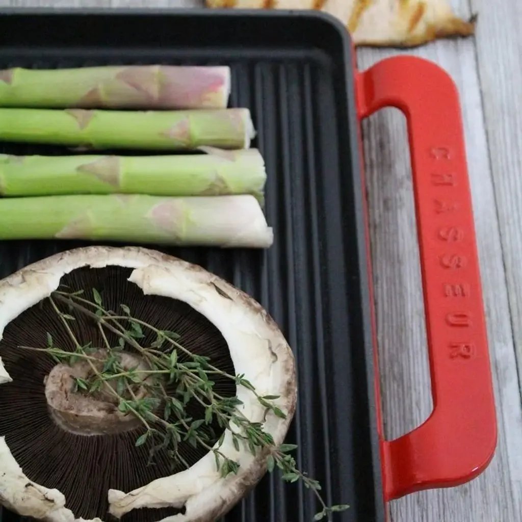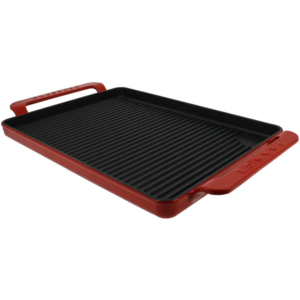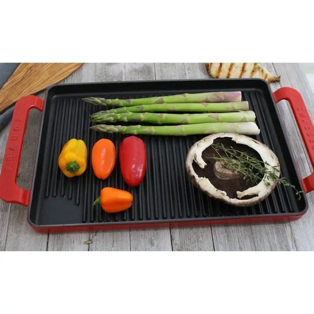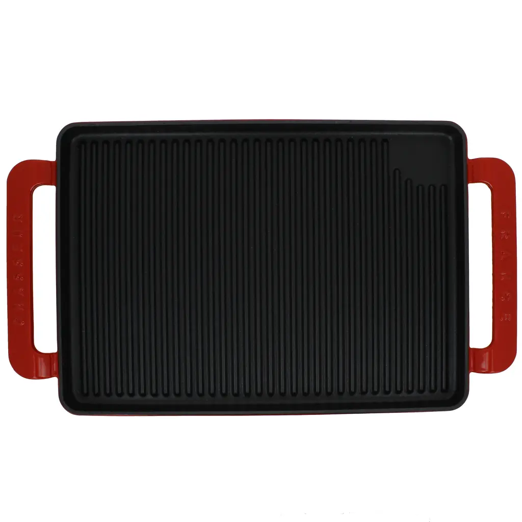 Chasseur 14-Inch Red Rectangular French Enameled Cast Iron Grill Pan With Handles - Chasseur French Cast Iron Griddle - Red
