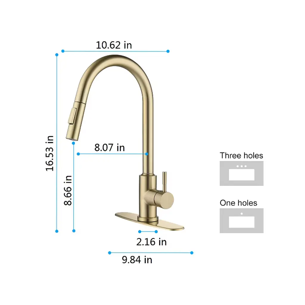 Chery Life Kitchen Faucet With Pull Down Sprayer, Gold