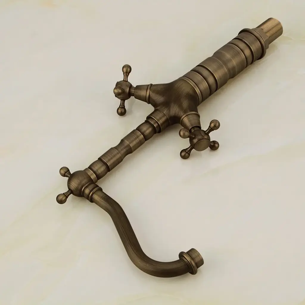 Carrying a charming old-world-inspired styling, Chester Faucet Collection coordinates well with traditional theme. From Chester Collection comes this vessel sink faucet. Graceful Victorian spout and the unique body merging with cross handles create this classic design to add a retro, elegant touch to both hospitality and residential decor. Comes in fine antique brass finish, this faucet is a favorable choice for any bathroom decor. Pair with other pieces from Chester to build a harmonious bathroom of charming, vintage style.