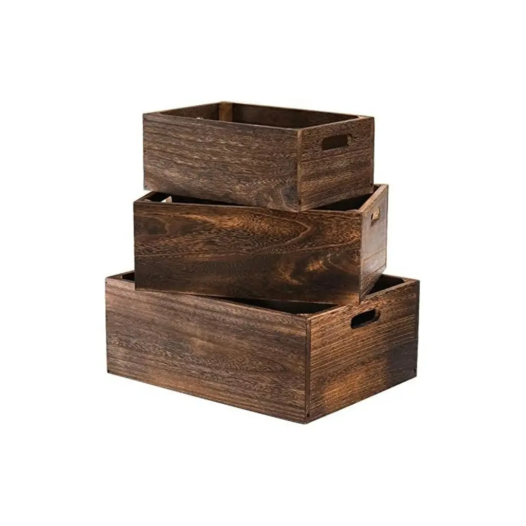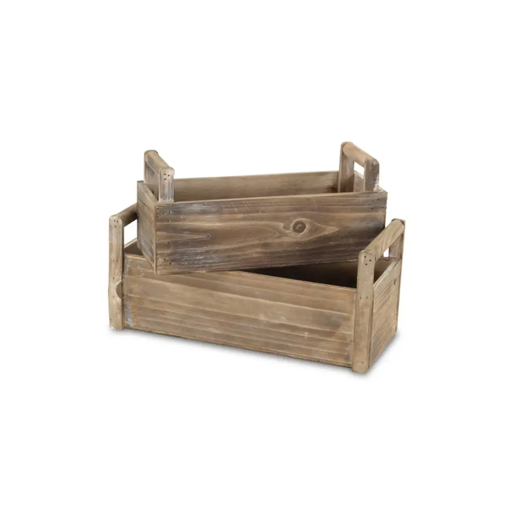 Cheung's Selma Set Of 3 Brown Wood Grain Slatted Rectangular Small Crate With Side Handles