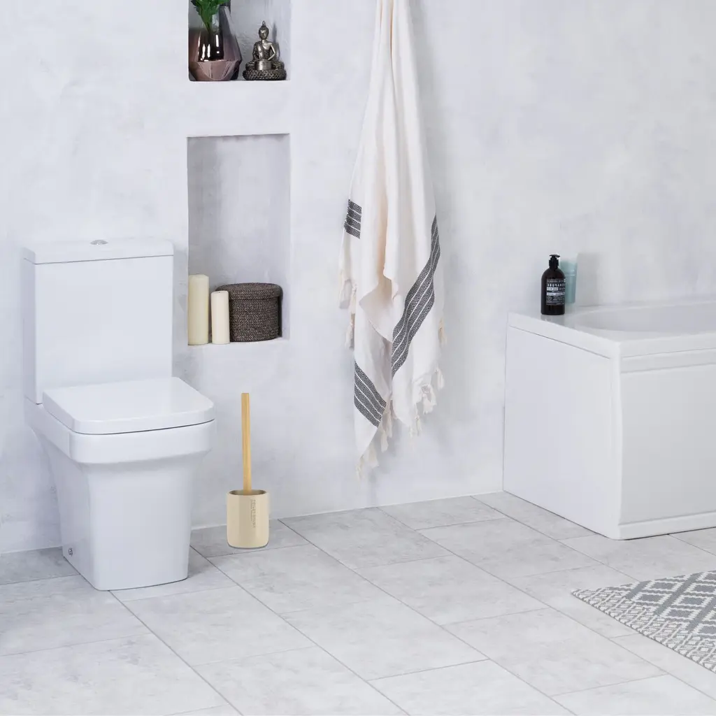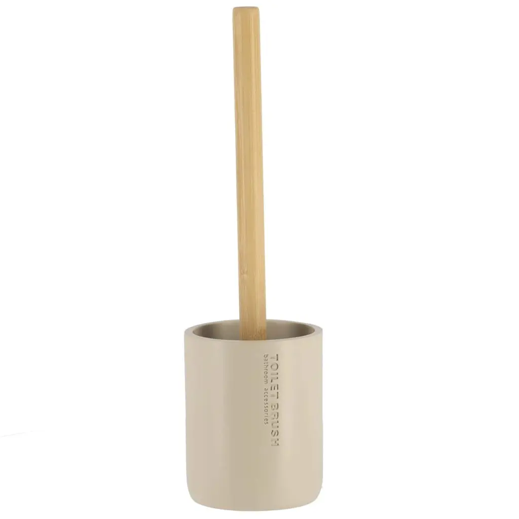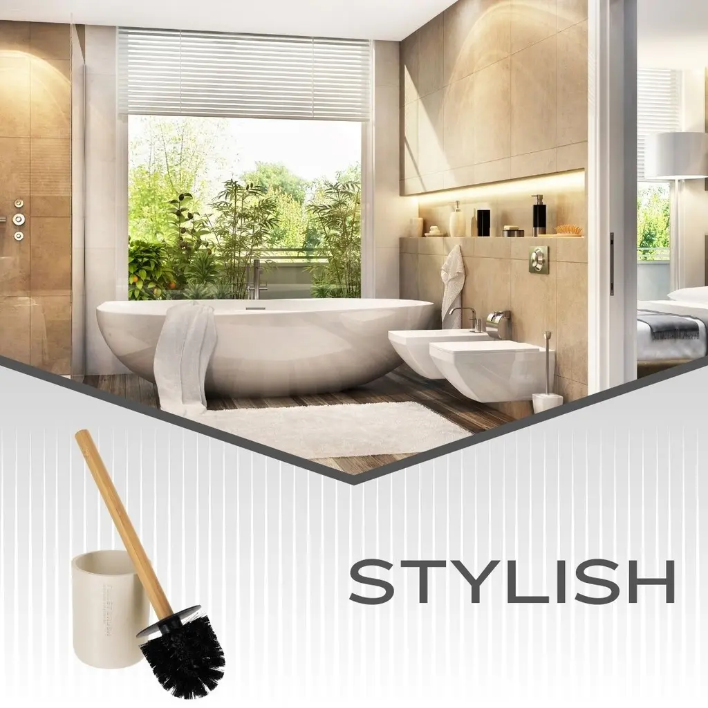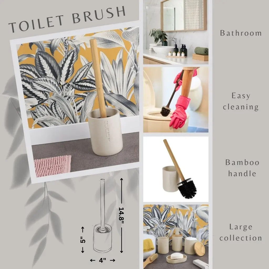 Introducing our Sleek Toilet Brush with Bamboo Handle, a perfect blend of elegance and functionality. This exquisite toilet brush set, designed with a sophisticated matte finish, instantly enhances the aesthetic of any bathroom. It features a natural bamboo handle, which adds a touch of natural warmth to its modern design. Additionally, this toilet brush holder set is made from high-quality polyresin, ensuring its durability and resistance to everyday wear and tear. Its compact size means it fits perfectly into any bathroom, maximizing space without sacrificing style. Also, the bamboo handle offers a comfortable grip, making cleaning easier and more efficient. Moreover, the toilet brush holder has a neutral yet refined look that complements many bathroom decors. Its surface is easy to clean, preserving its impeccable appearance and hygiene. Furthermore, this toilet bowl brush set is versatile enough to adapt to contemporary or classic bathroom themes. Discover the perfect harmony between function and fashion with this elegant Toilet Brush Set. Imported from France, Made in China