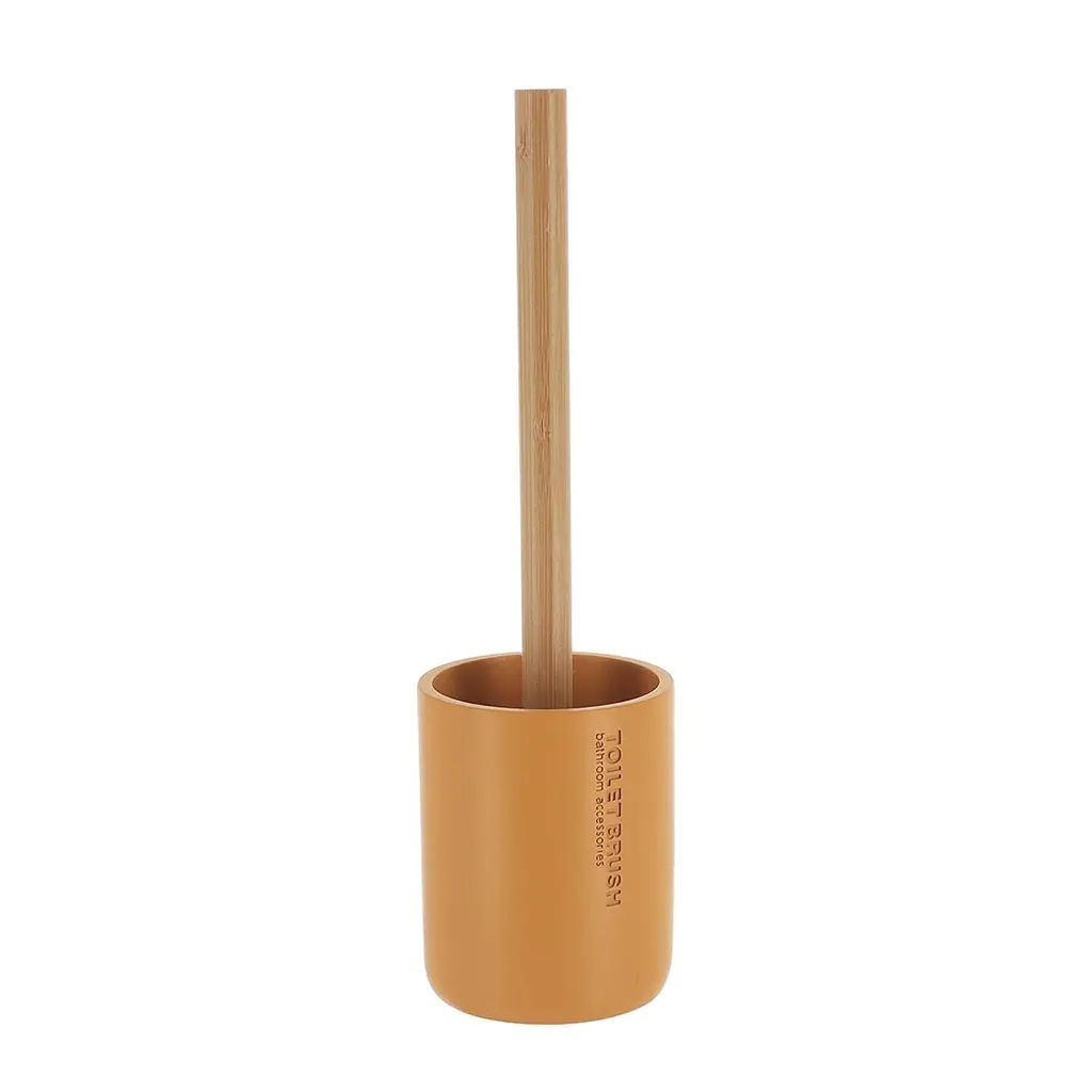 Chic Matte Toilet Brush Holder Set With Natural Bamboo Handle - 4 L X 4 W X 14.8 H - Mustard Yellow