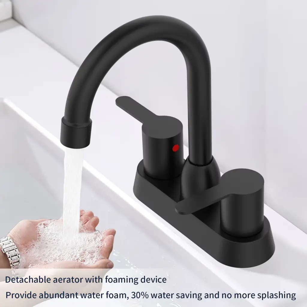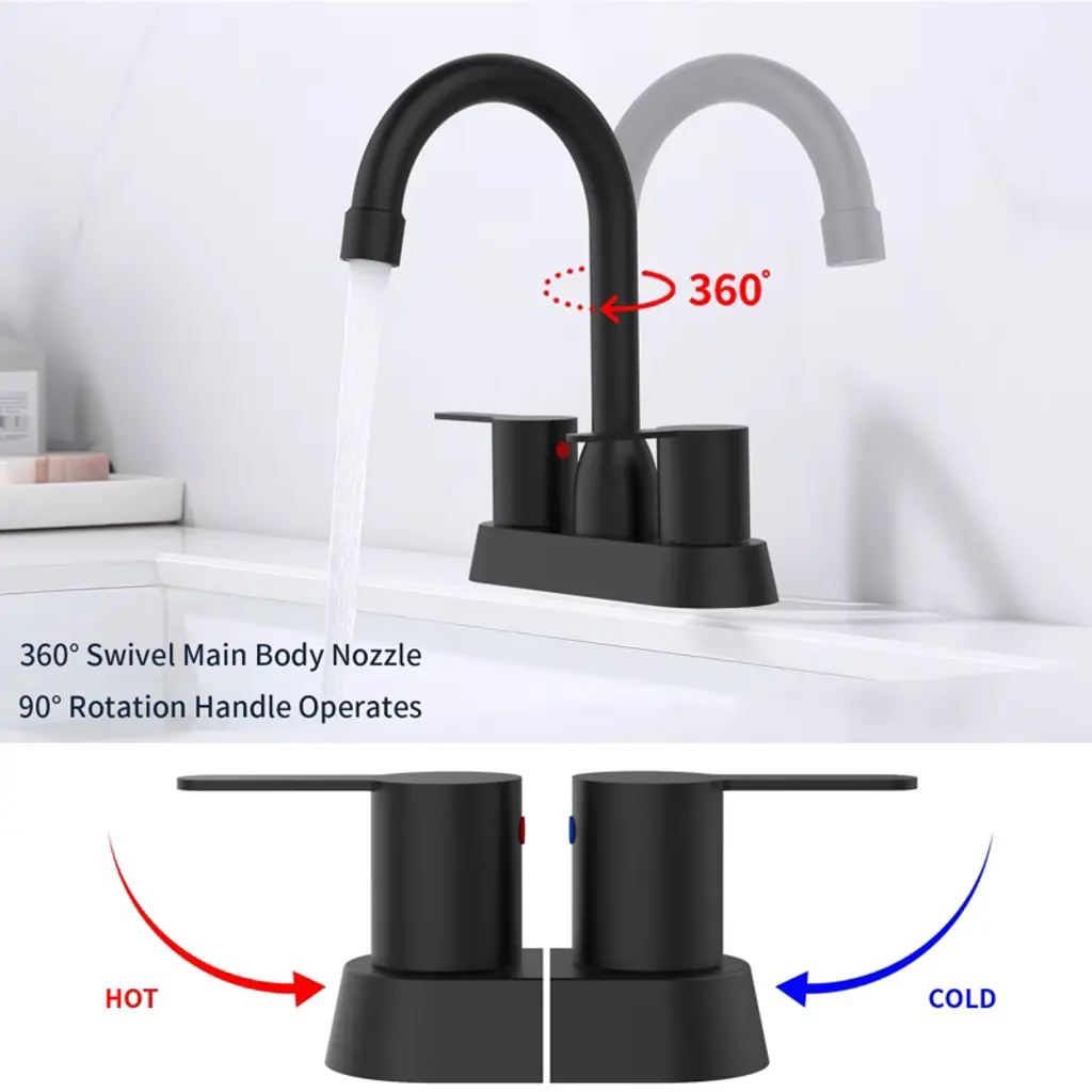 Chicfurnit Bathroom Sink Faucet 2 Handle Centerset Faucet For 3 Hole Installation With Matte Black For Modern Bathrooms, Black, 10.62"*9.65"*2.6"