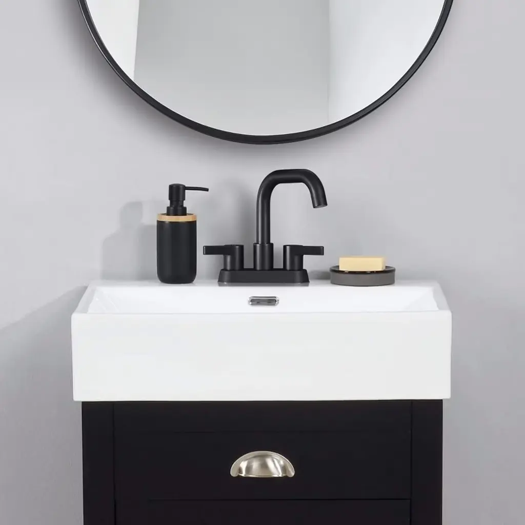 Chicfurnit Bathroom Sink Faucet 2 Handle Centerset With Pop Up Drain And Water Supply Lines For Bathroom, Black, 8"*8"*10"