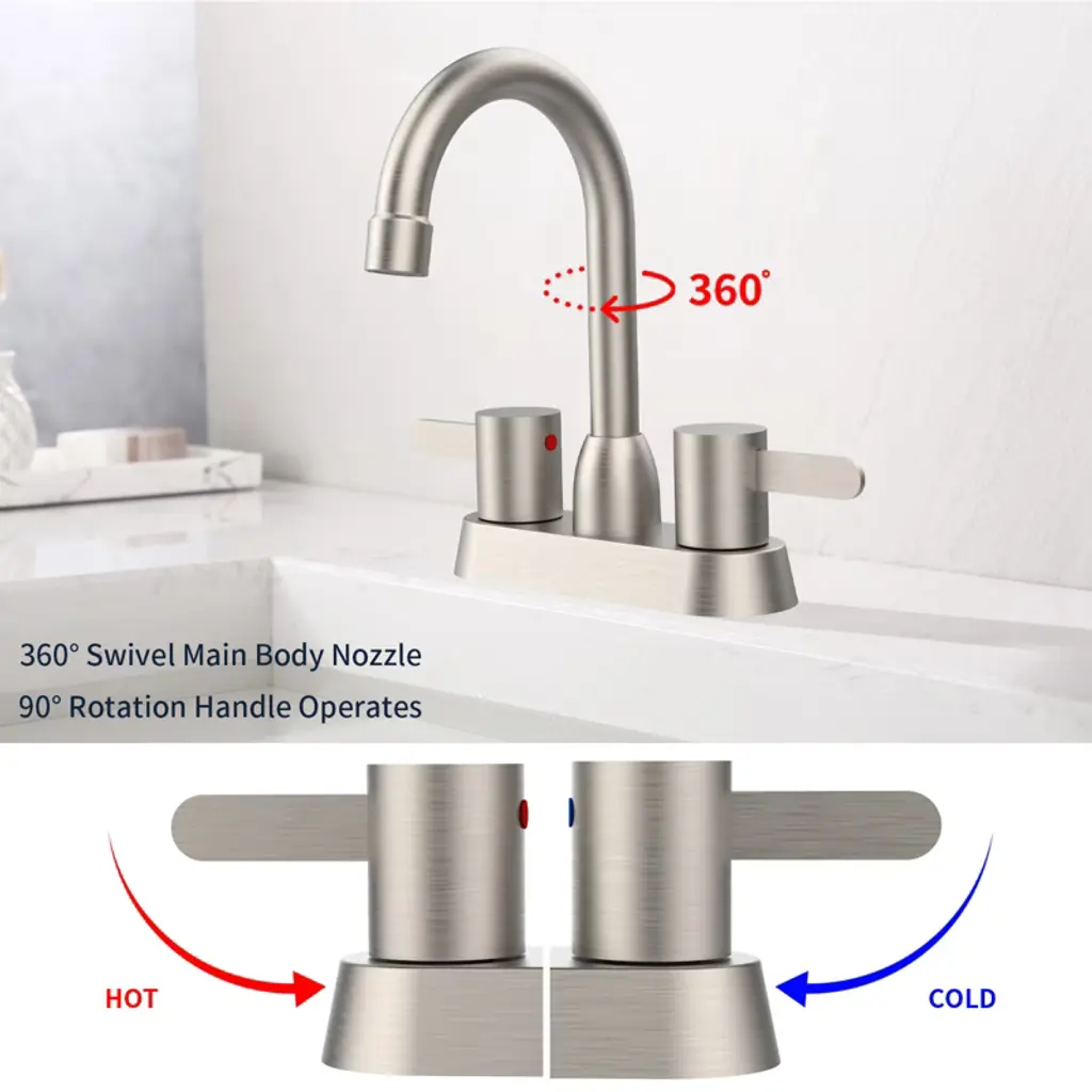 ChicFurnit Bathroom Sink Faucet offers easy, precise control with its modern two-handle design, perfect for daily use. Built from solid brass with a stainless steel handle, this faucet ensures durability and long-lasting performance. The faucet installs quickly in just 30 minutes with easy-to-follow instructions, saving time and the cost of hiring a plumber. Equipped with a durable deck mount plug, this faucet ensures secure, stable installation for dependable functionality.