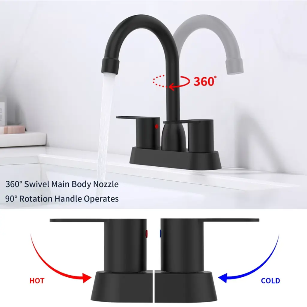 Chicfurnit Bathroom Sink Faucet Modern 2 Handle Centerset Faucet For Trendy Vanities And Rv Spaces, Black, 10.63"*9.65"*2.6"