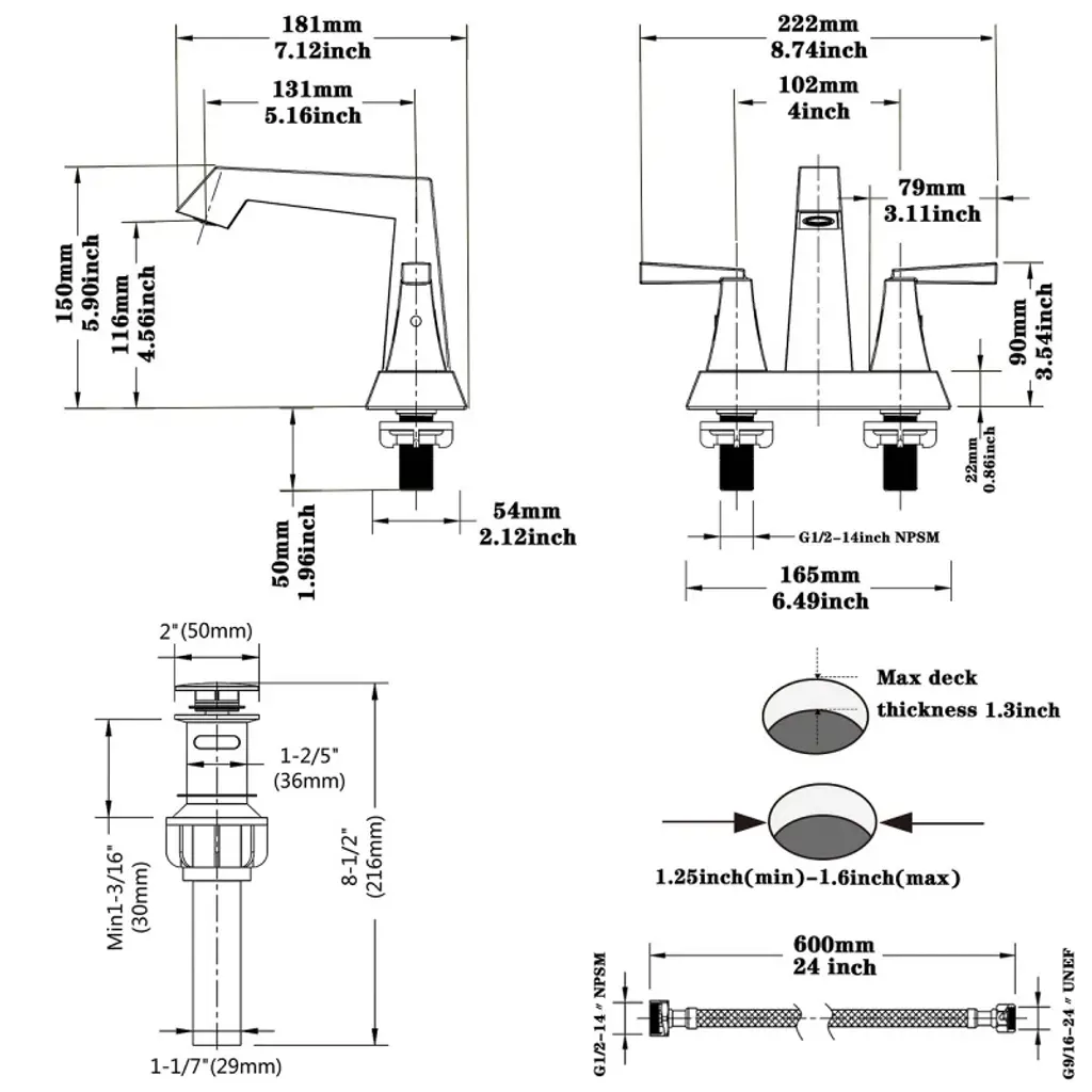 ChicFurnit Bathroom Sink Faucet combines innovative seal technology with a ceramic disc for long-lasting durability, lasting twice as long as standard models. The modern dual-handle design provides ergonomic control over water temperature while adding a sleek, contemporary touch. With an aerated stream of 1.2 gallons per minute, it balances efficiency and performance. Installation is easy on decks up to 2-1/2 inches thick, and its gloss finish resists tarnishing for years of beauty.