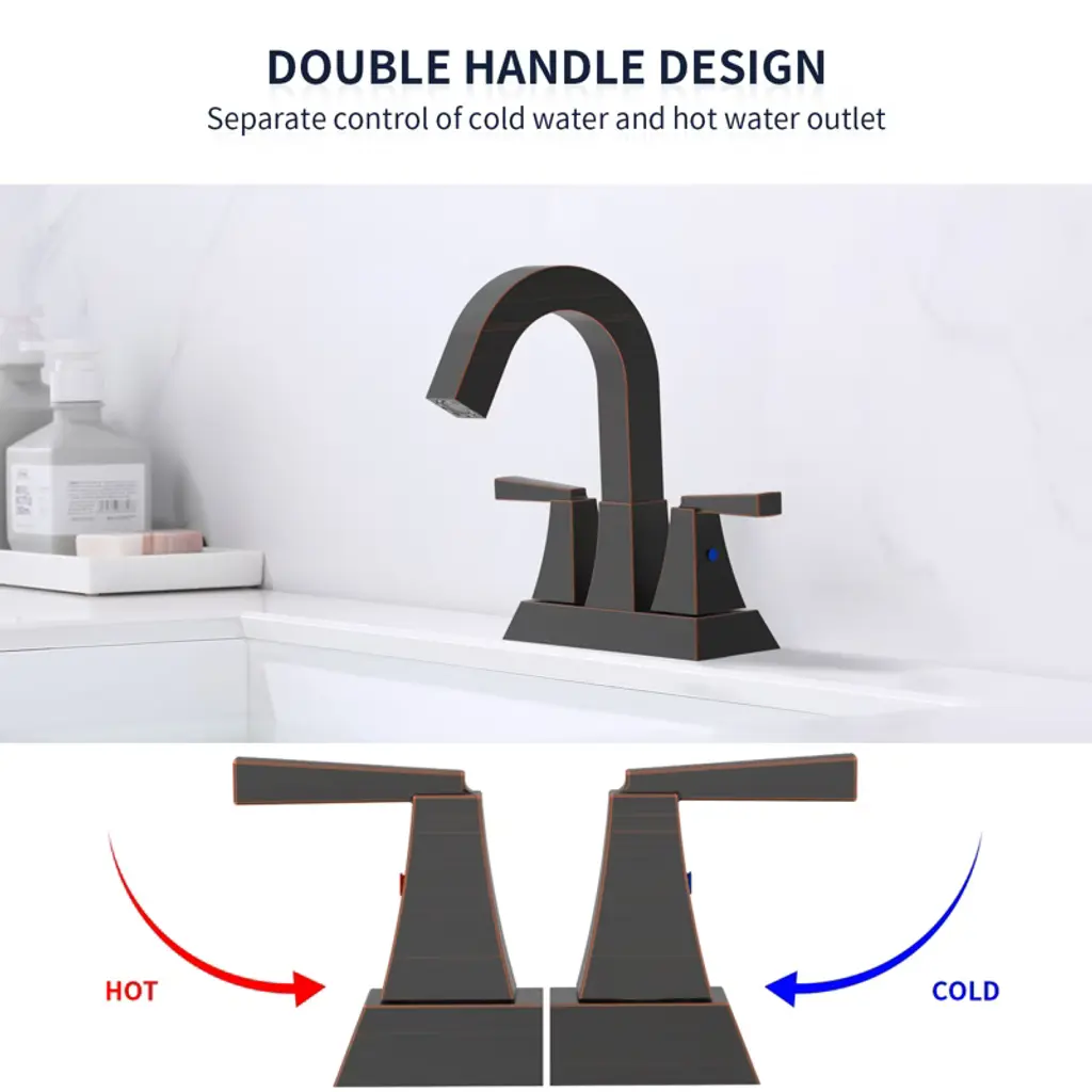 Chicfurnit Bathroom Sink Faucet Modern 2 Handle Centerset Faucet With Pop Up Drain And Overflow For Contemporary Vanities, Bronze, 12.6"*10.24"*7.09"